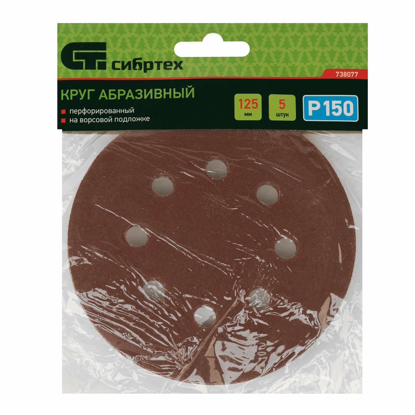 Круг абразивный на ворсовой подложке под "липучку", перфорированный, P 150, 125 мм, 5 шт Сибртех информация: