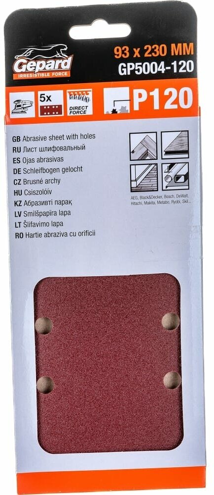 Шлифлист GEPARD (GP5004-120) самосцепляющийся 93х230 мм Р120 5 штук информация: