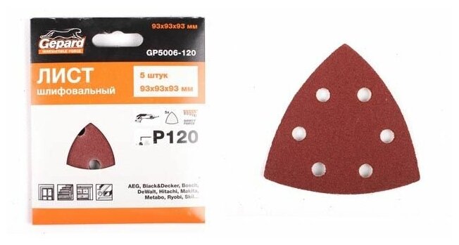 Шлифовальная шкурка на липучке 93 мм Р120 наждачная бумага 5 штук дельта лист GEPARD (GP5006-120)