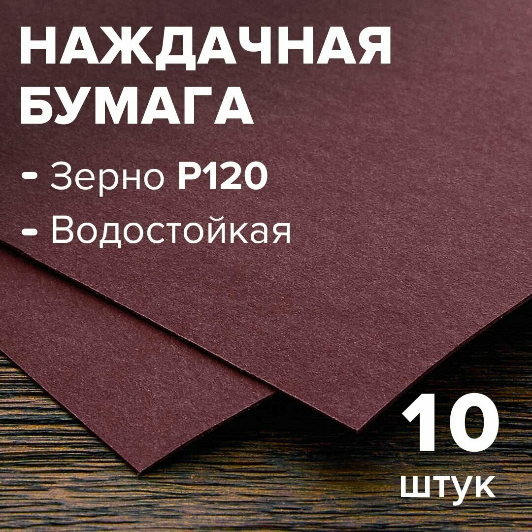 Бумага шлифовальная (наждачная бумага), водостойкая, на бумажной основе 10 листов, зерно 120, 230 мм * 280 мм
