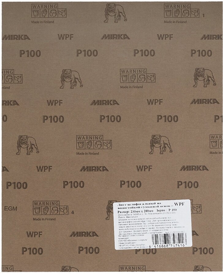 Шлифовальная бумага MIRKA WPF, водостойкая, 230x280 мм, зернистость P360