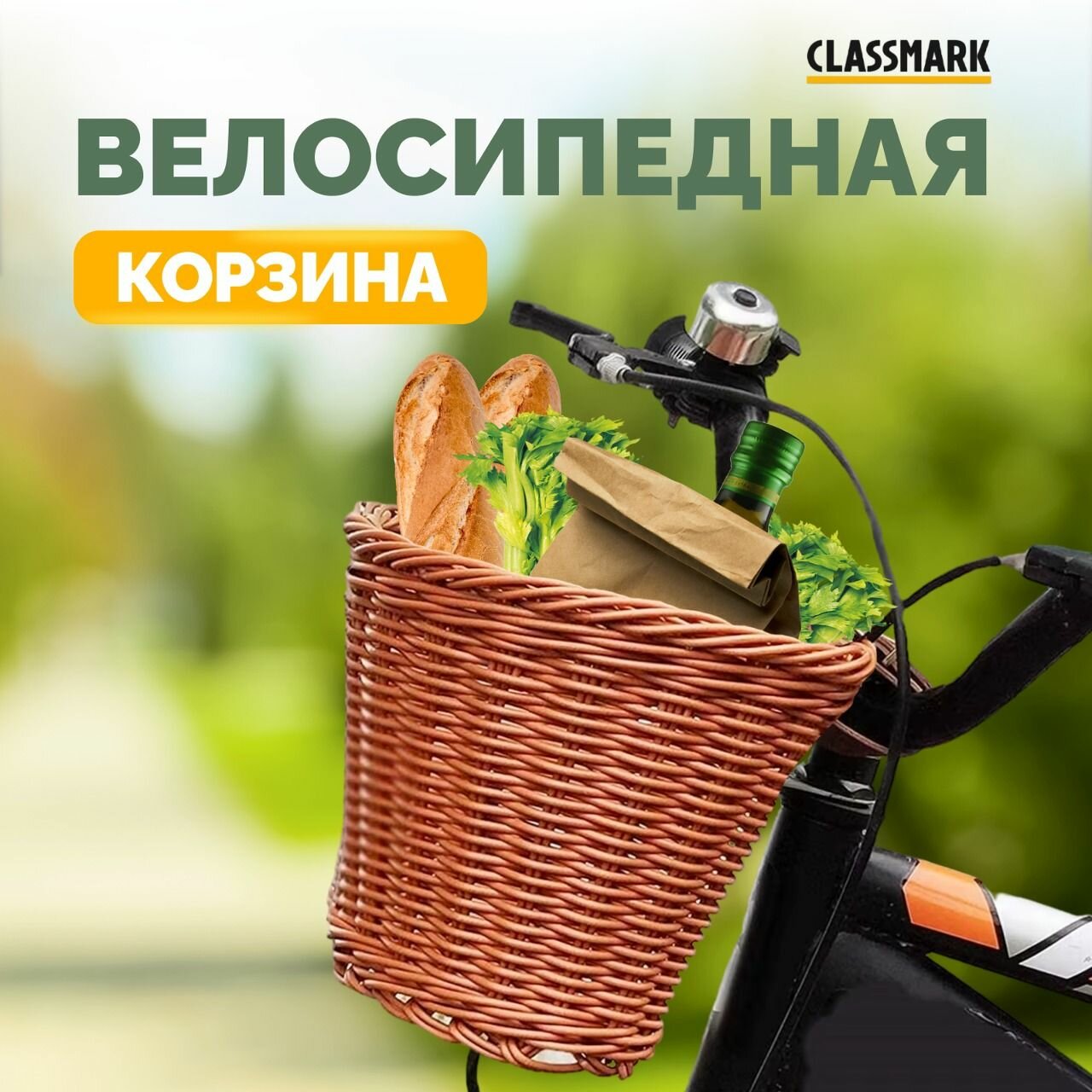 10 цен на Корзина для велосипеда Classmark универсальная на руль передняя, велокорзина для самоката плетеная, на ремнях