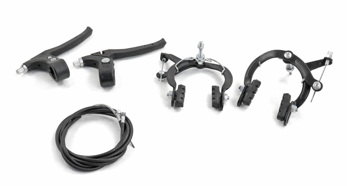 10 цен на Тормоз ручной клещевой металлический с тросами (набор передний + задний+ пластиковые ручки+колодки)
