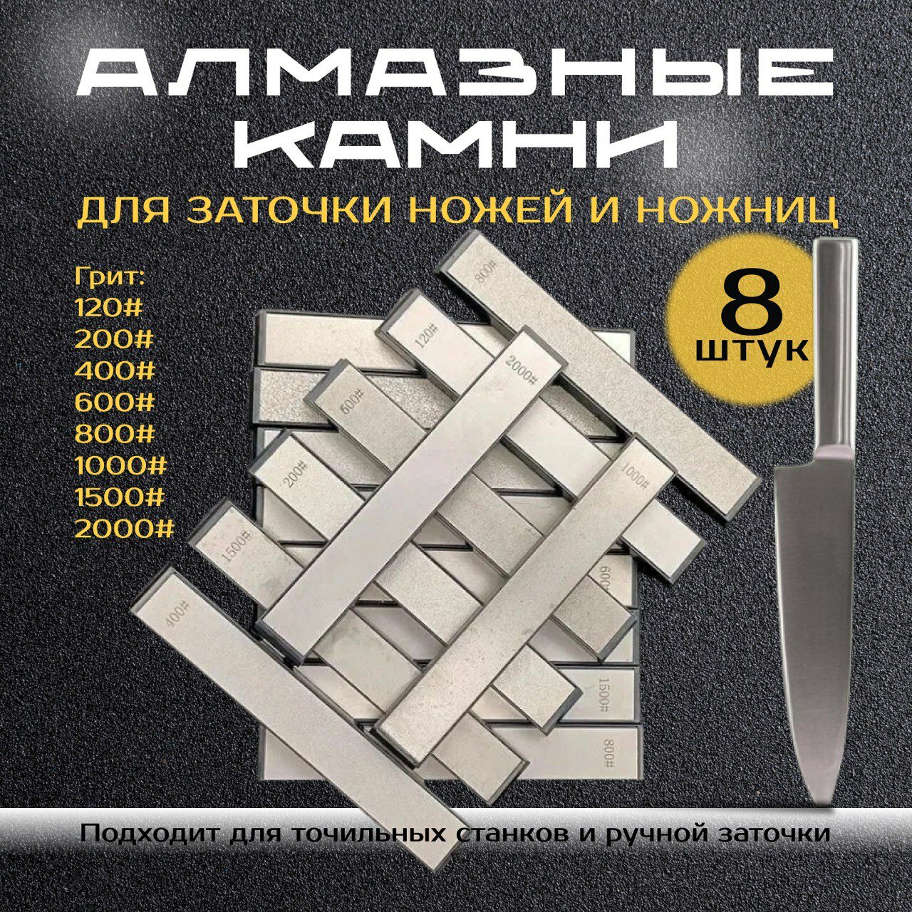 10 цен на Алмазные бруски для заточки ножей 8шт - грит 120, 200, 400, 600, 800, 1000, 1500, 2000