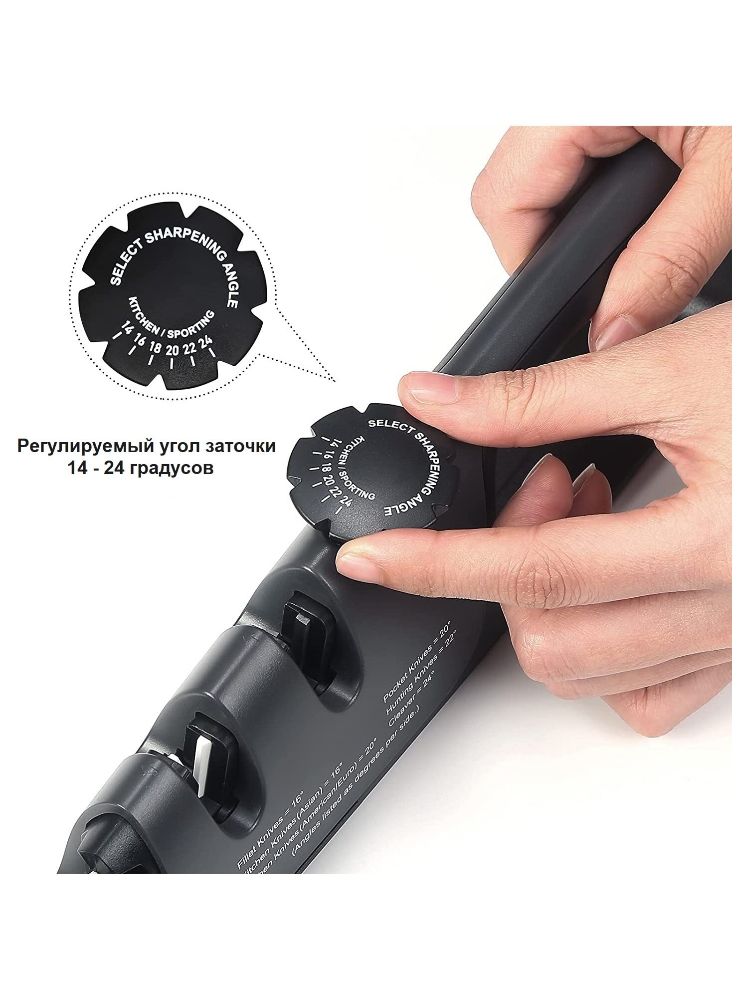 Точилка для ножей и ножниц ножеточка ручная настольная, механическая, трехступенчатая, регулируемые углы заточки для разных видов ножей