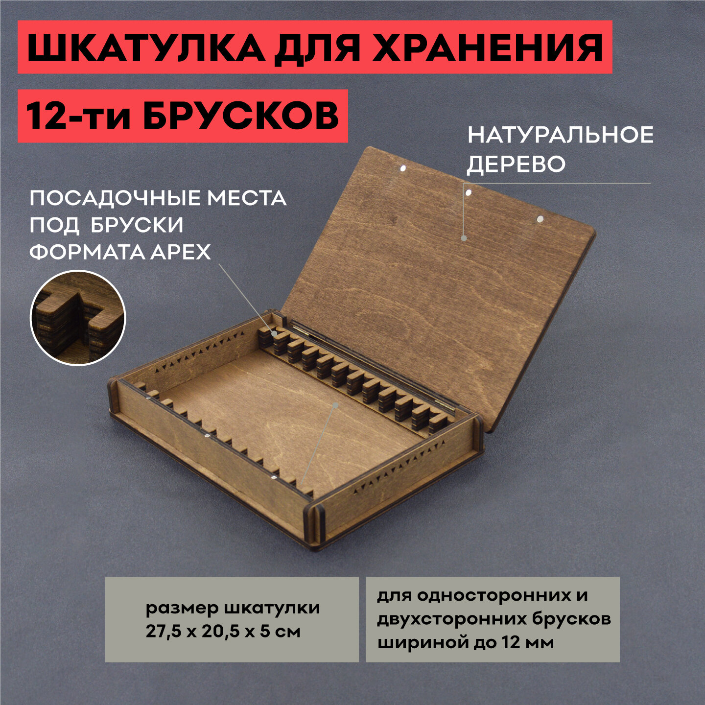 Шкатулка для хранения 12 заточных брусков / деревянный кейс для брусков для точилок / для натуральных камней для заточки / формат APEX информация: