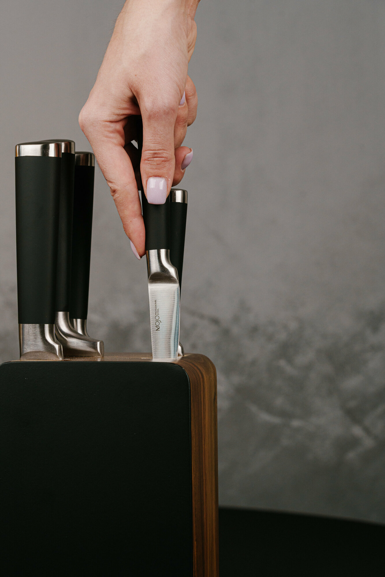 | Комплектация | Набор поварской - 1шт., нож для нарезки хлеба - 1 шт., нож разделочный - 1 шт., нож универсальный - 1 шт., нож для овощей - 1шт., подставка для ножей - 1 шт., памятка по использованию - 1 шт., подарочная упаковка - 1 шт. |