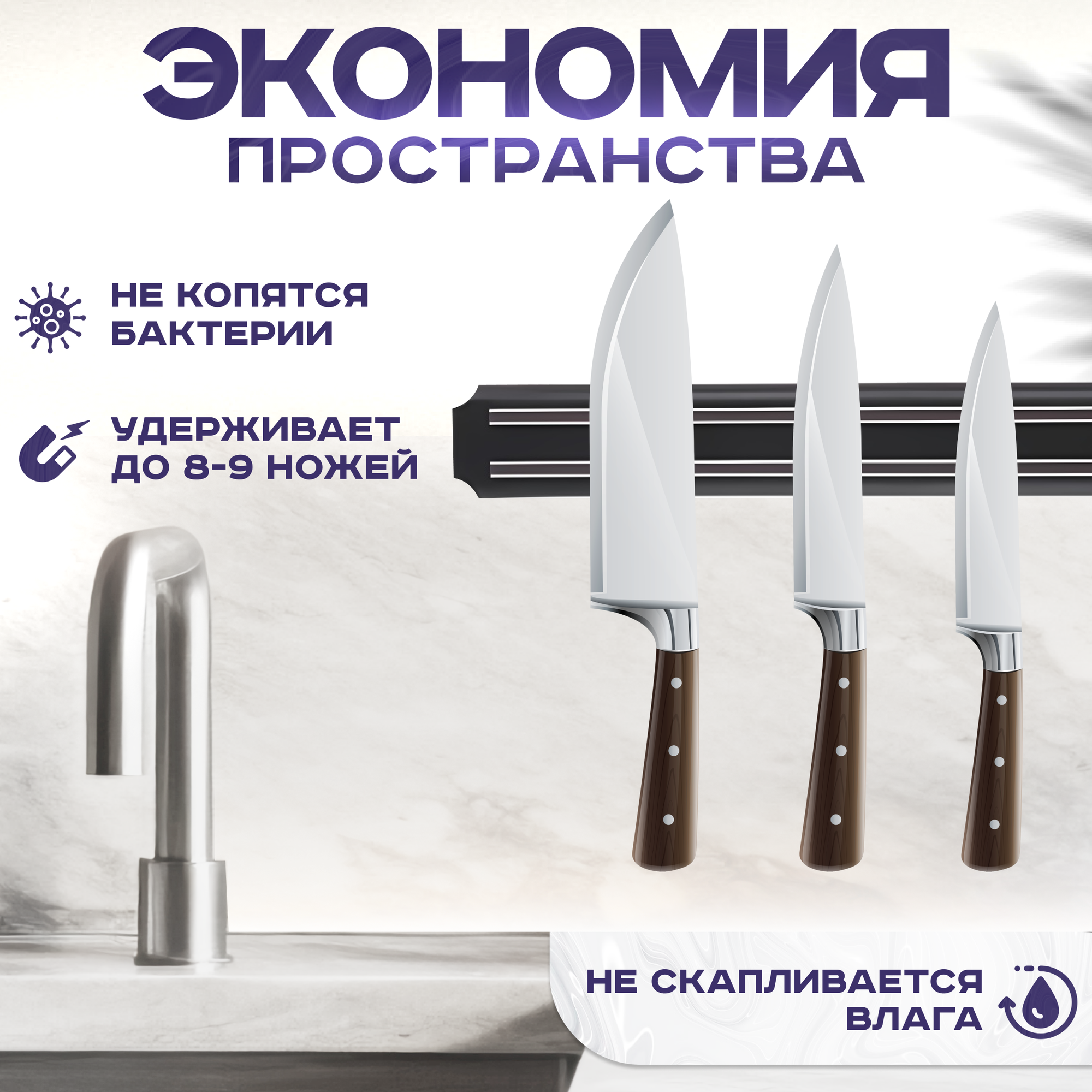 Магнитный держатель для ножей, магнит на стену информация: