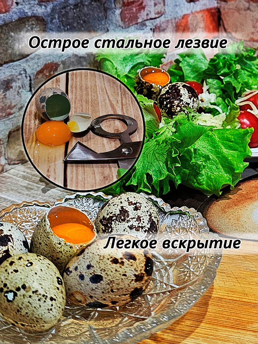 | Дополнительная информация | Ножницы кухонные для вскрытия перепелиных яиц - это большой и маленький предмет в одном. Их компактный размер позволяет легко хранить их в вашей кухонной утвари, не занимая много места. Они также легко моются и чистятся, что обеспечивает их долговечность и сохраняет их в идеальном состоянии. |