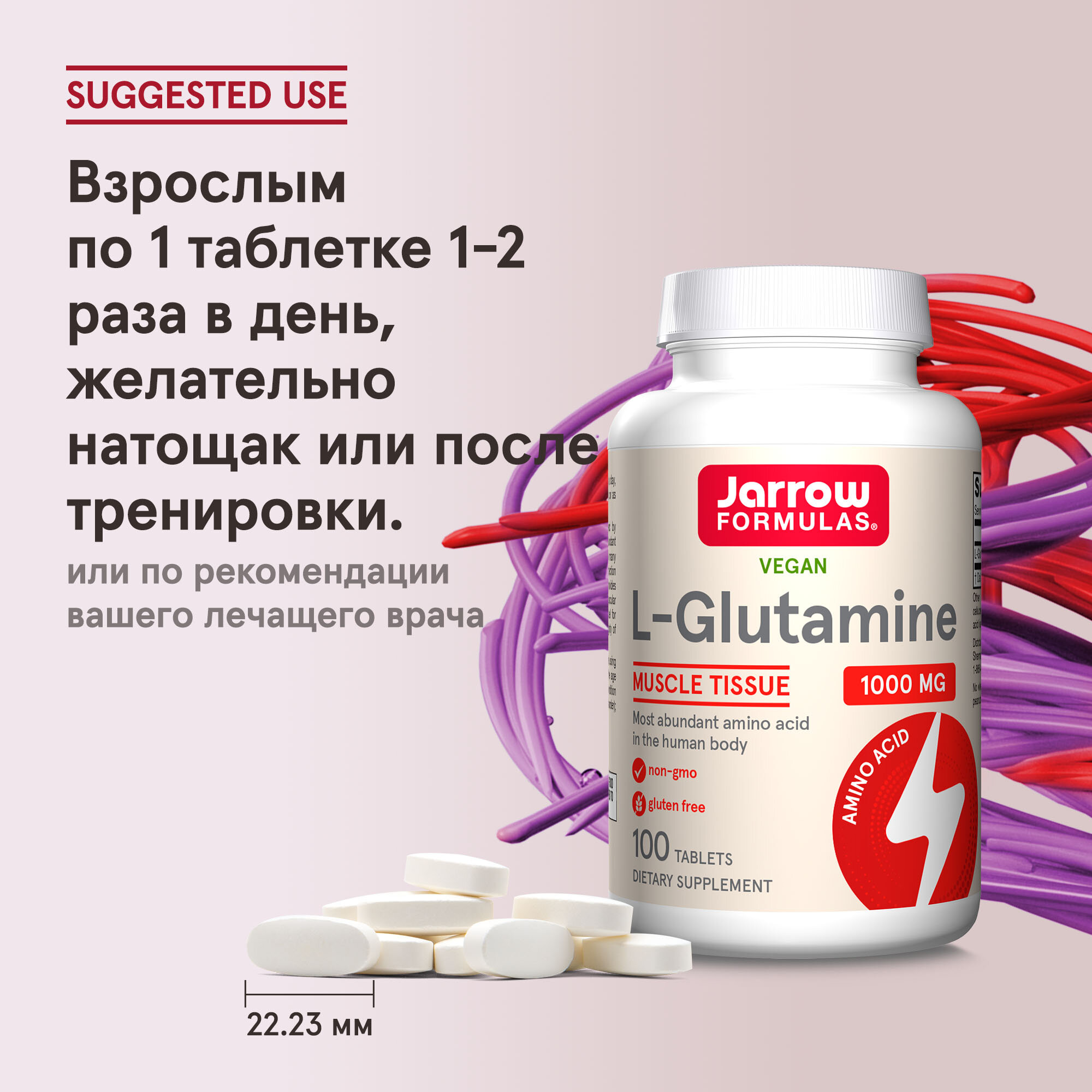 Jarrow Formulas L-Glutamine 1000 mg 100 Tab / Аминокислота L-Глютамин 1000 мг 100 табл информация: