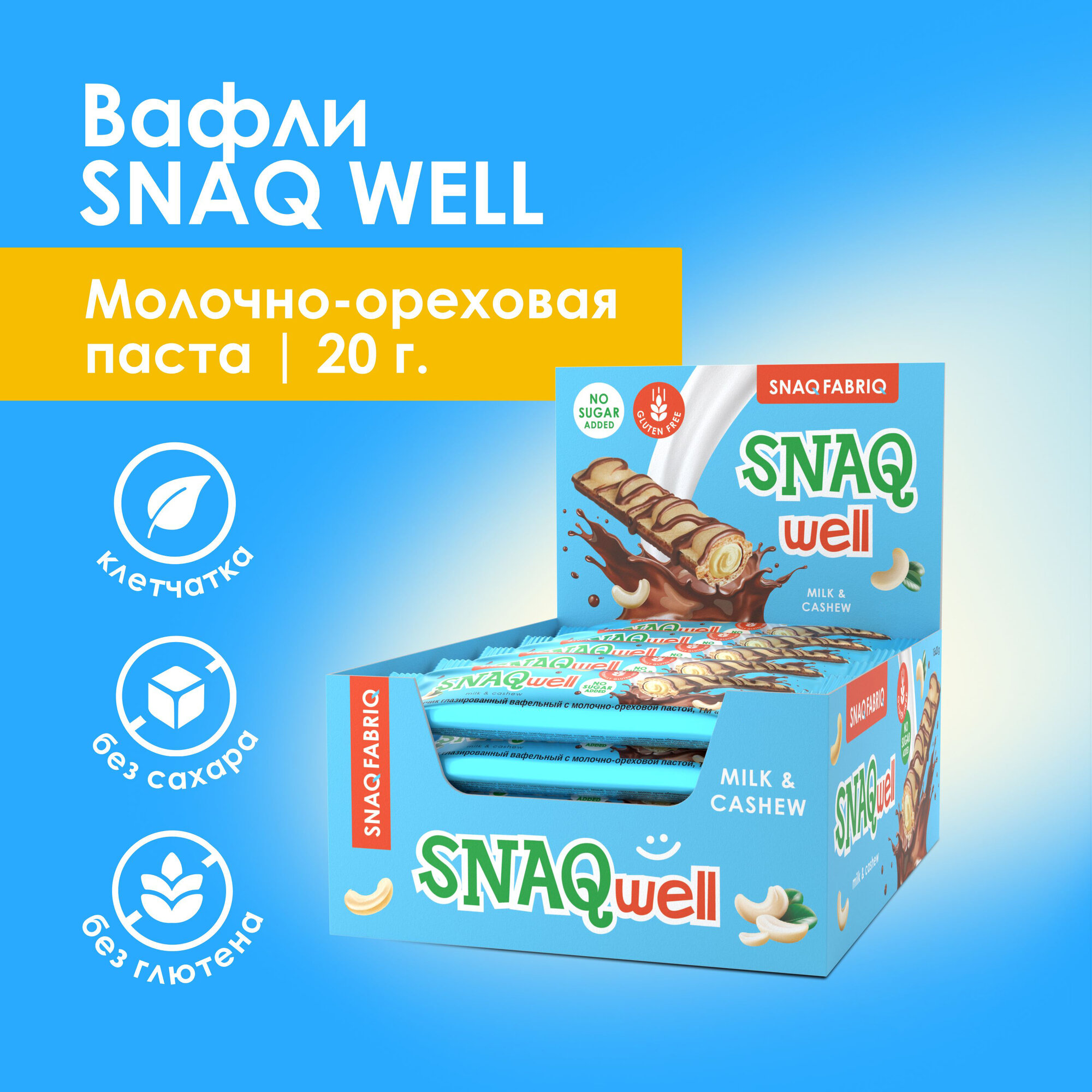 SNAQ FABRIQ Вафельный бытончик глазированный с молочно - ореховой пастой 28 штук информация:
