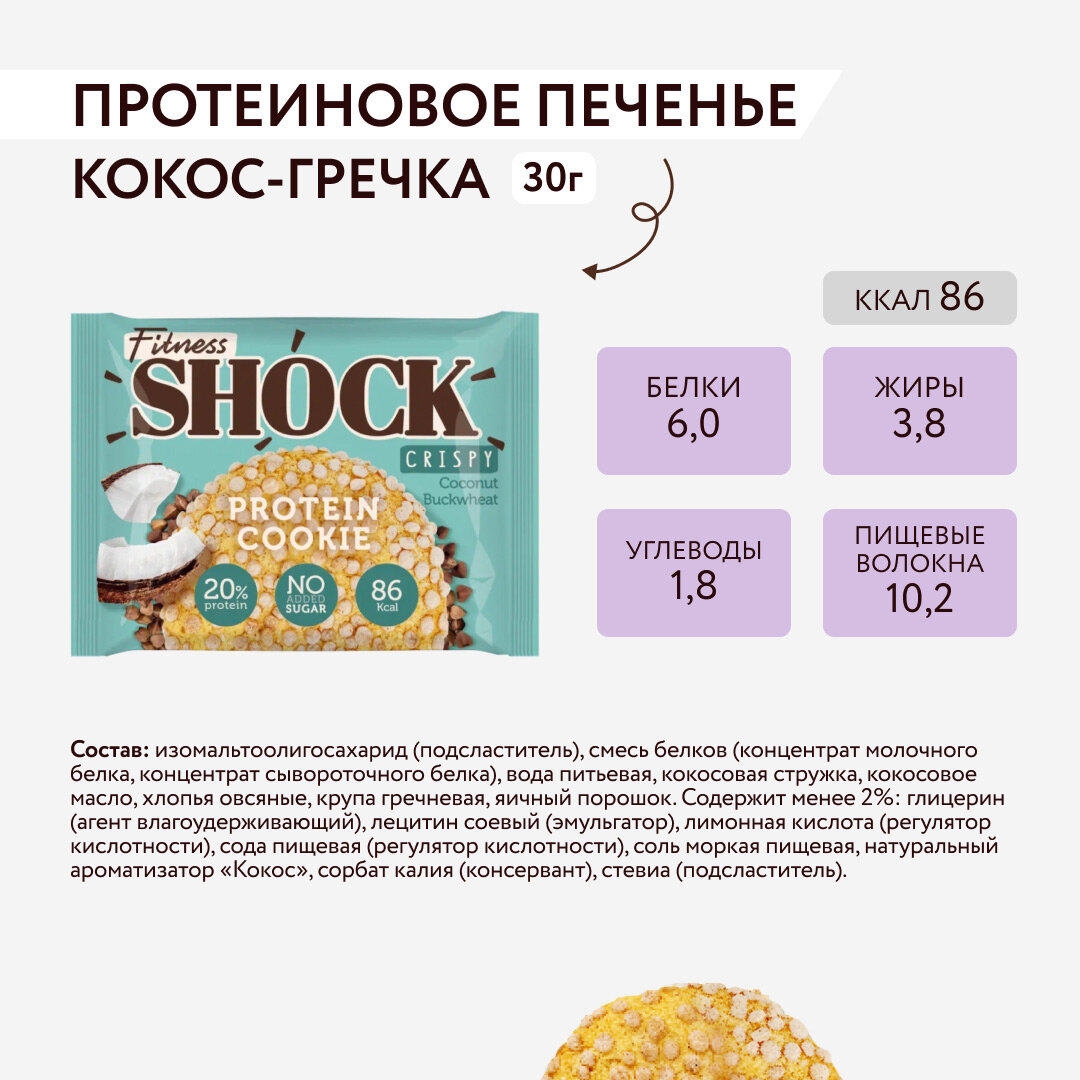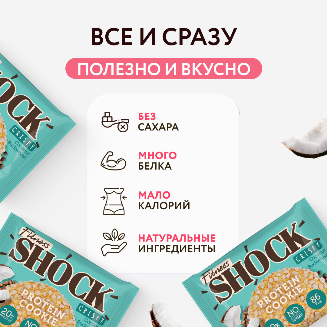 10 цен на Протеиновое печенье без сахара Crispy Кокос-гречка FitnesSHOCK, 12 штук по 30 г.