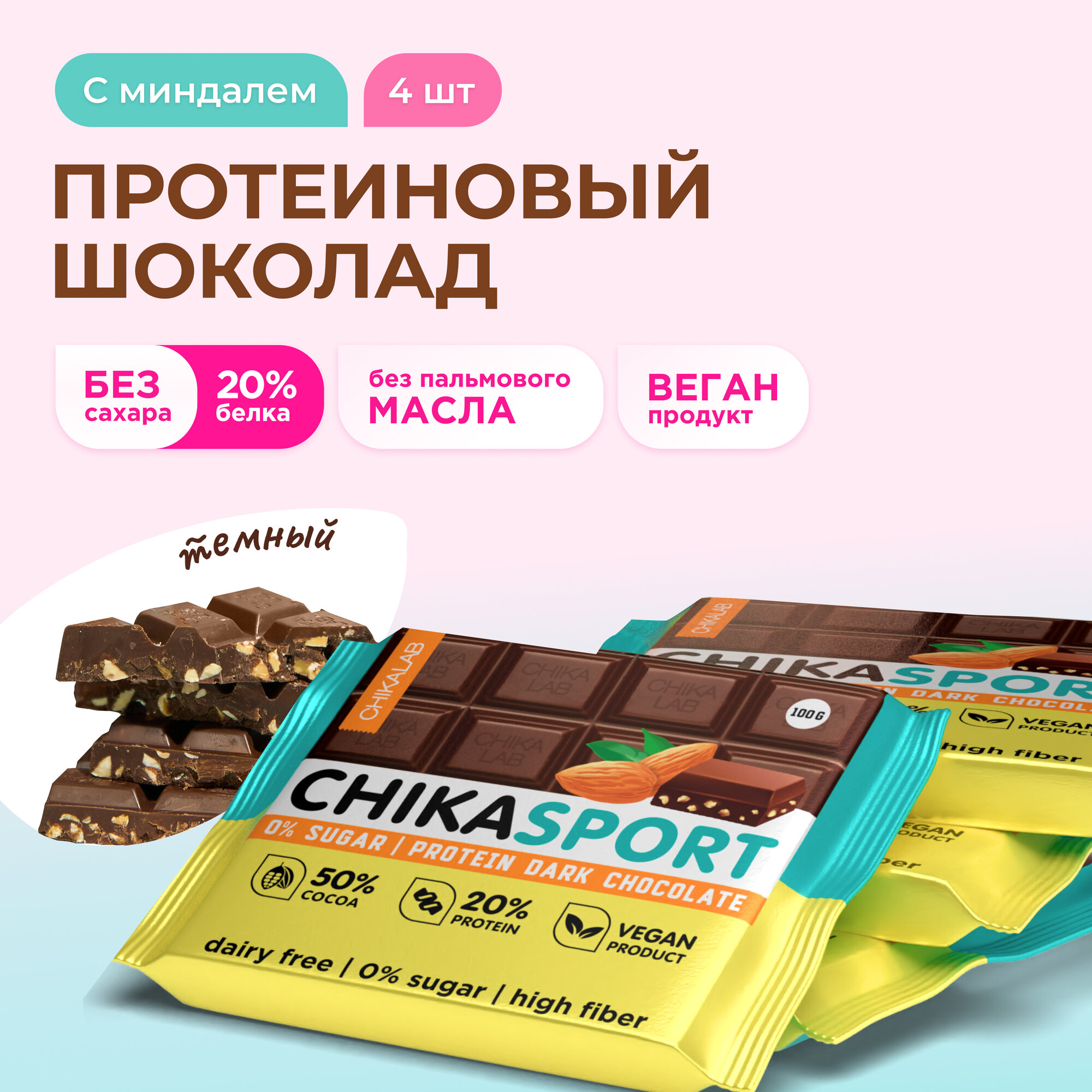 10 цен на CHIKALAB Протеиновый темный шоколад без сахара с миндалем, 100г х 4 шт