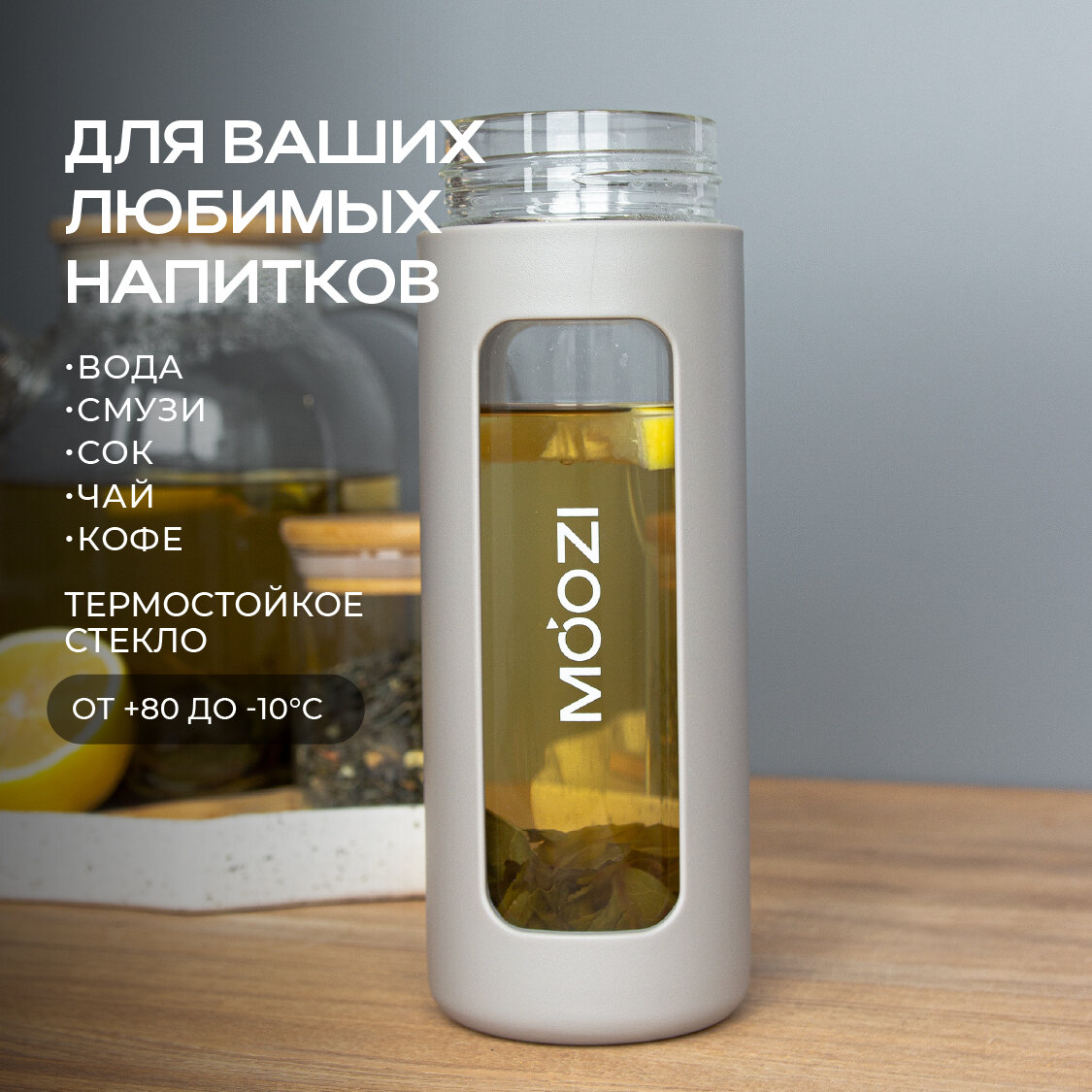Бутылка для воды спортивная MOOZI, многоразовая, объем 460 мл, цвет серо-бежевый 1 100 ₽