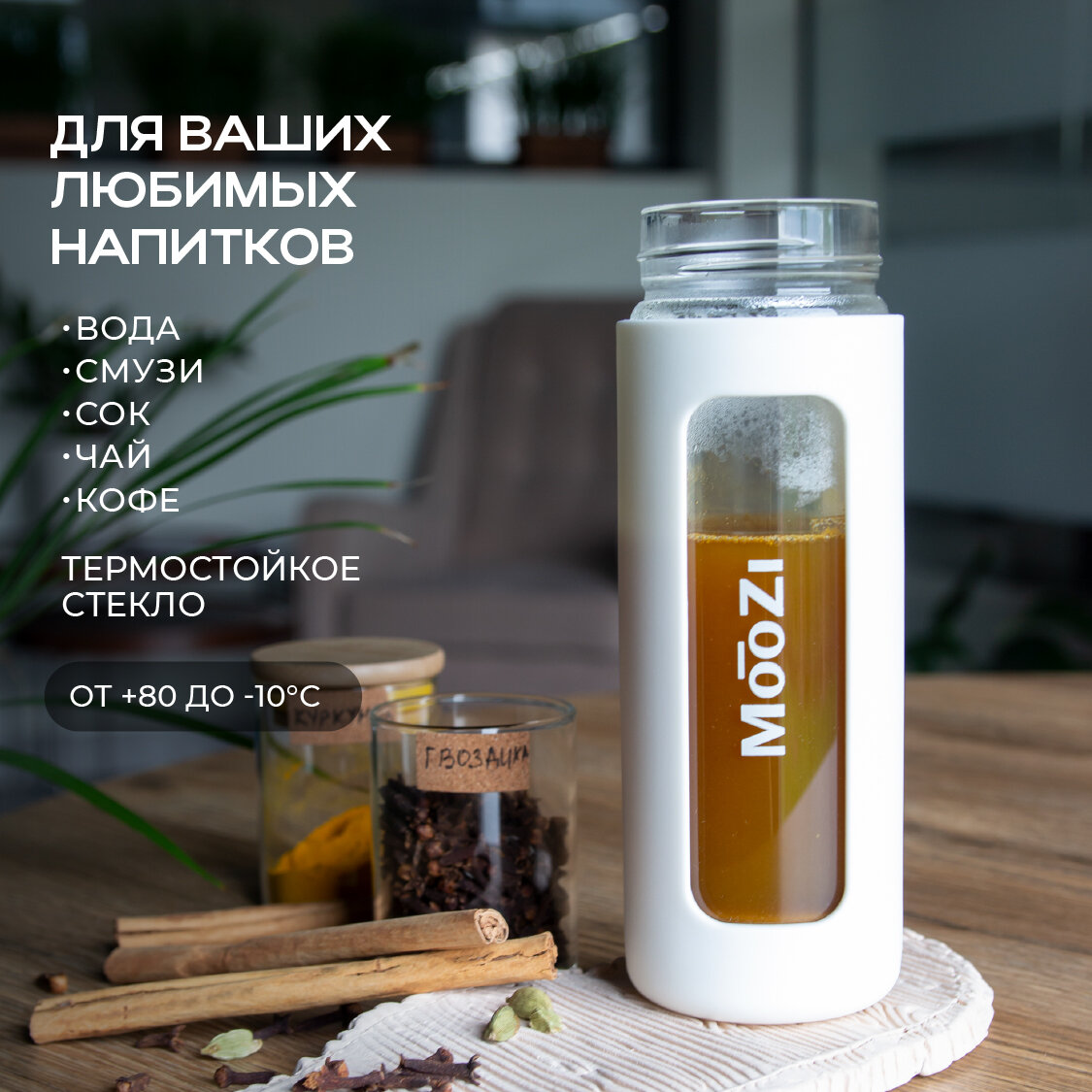 10 цен на Бутылка для воды спортивная MOOZI, многоразовая, объем 380 мл, цвет белый