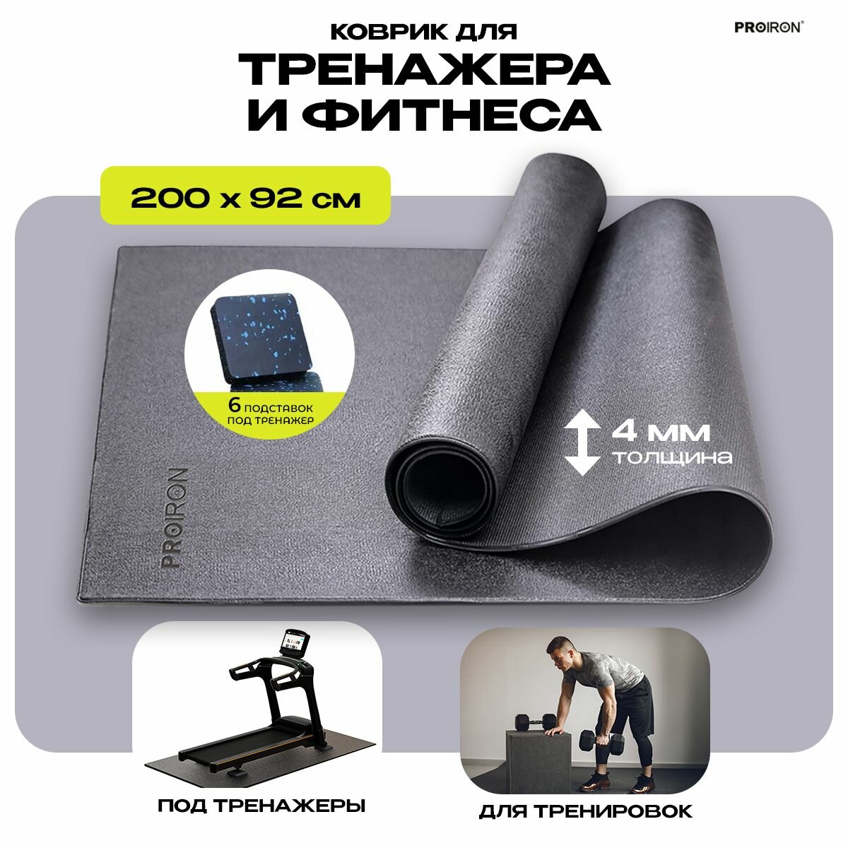 Коврик для тренажера, фитнеса, PROIRON КС2092, размеры 200х92 см, черный информация: