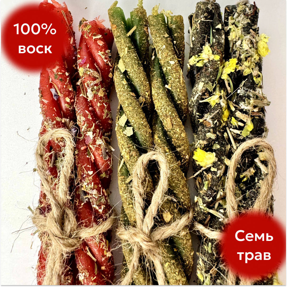 Магические скрутки свечи с травами для ритуалов на очищение, здоровье и деньги набор 6 шт. 350 ₽