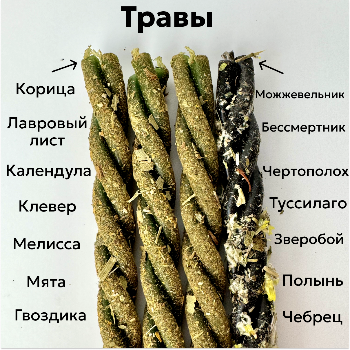 Магические свечи с травами/Магические скрутки свечи с травами для ритуалов от Неудач, набор 4 шт. 310 ₽