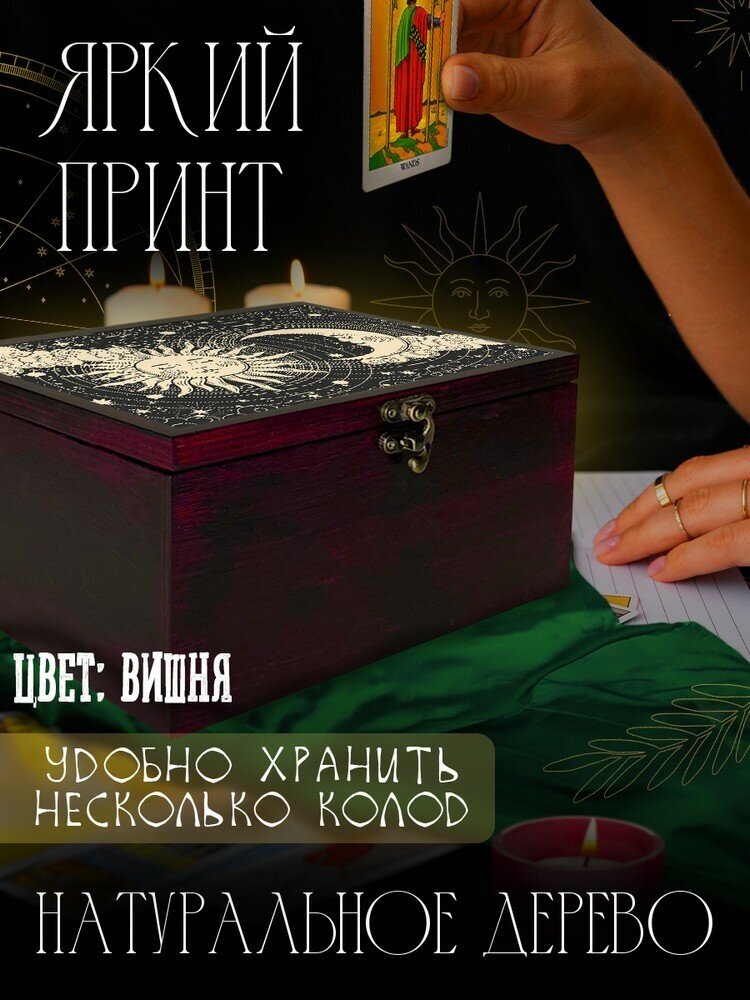 Шкатулка цвета вишни для хранения карт Таро и аксессуаров, 22x17x12 см, Небо - 33 информация: