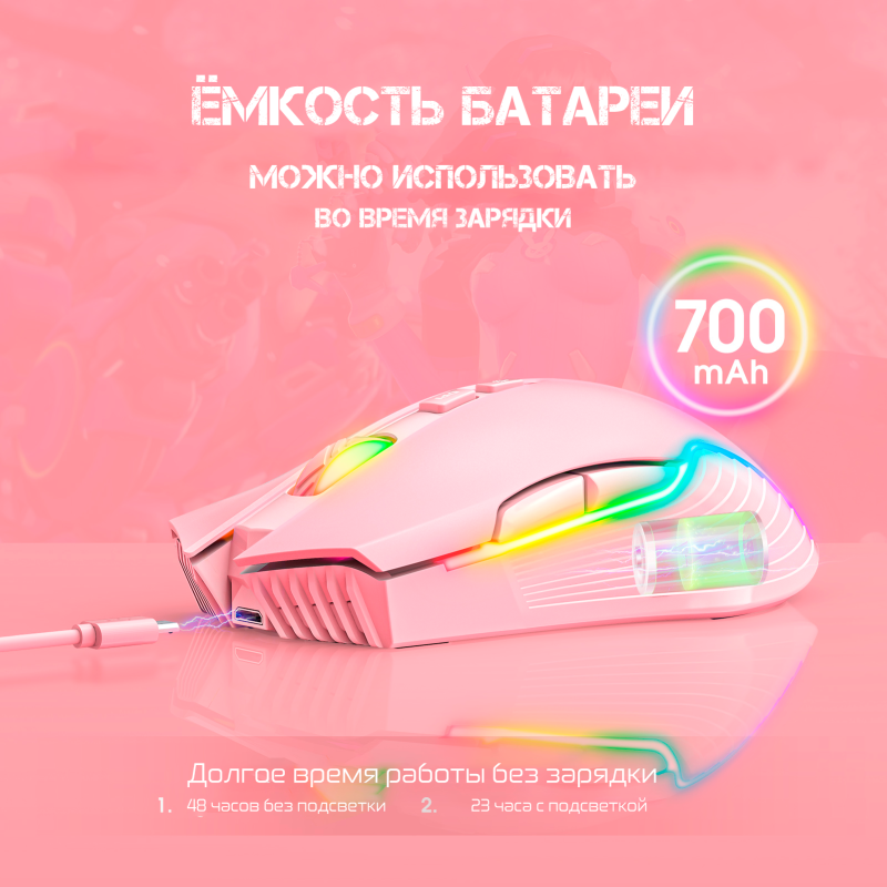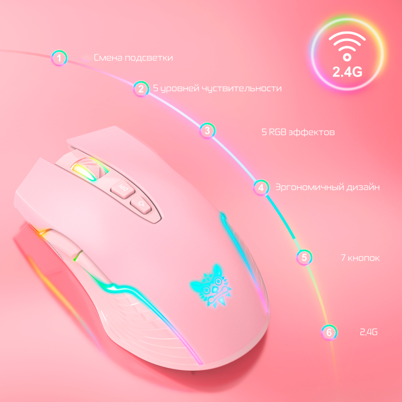 Беспроводная игровая мышь для компьютера Onikuma CW905-P Pink Cloud с RGB подсветкой информация: