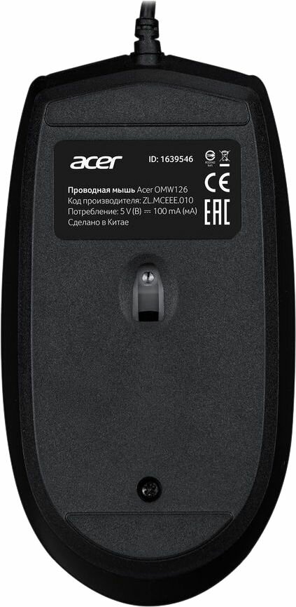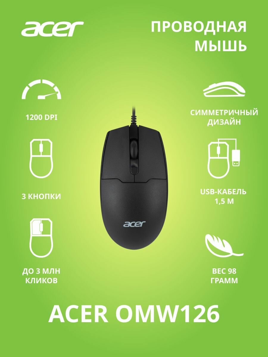 Мышь Acer OMW126 черный (1000dpi) USB (2 кнопки) информация: