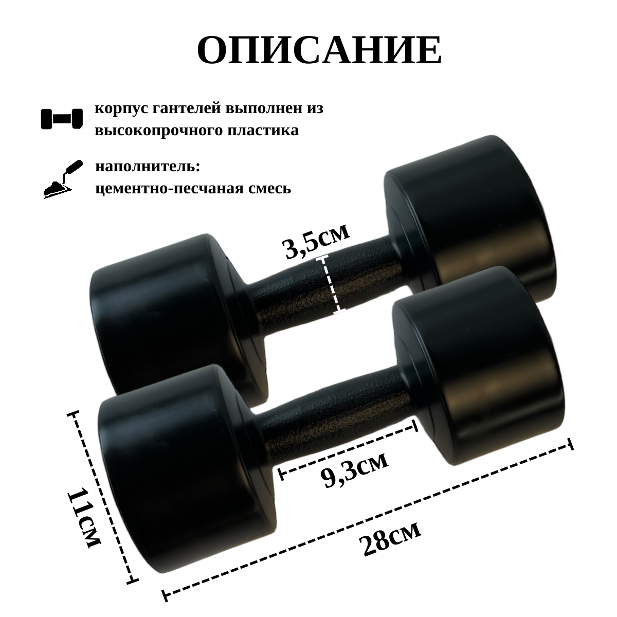 | Дополнительная информация | Размер одной гантели: 28 х 11 х 11 см. Наполнитель: композитная смесь (цемент, песок). |