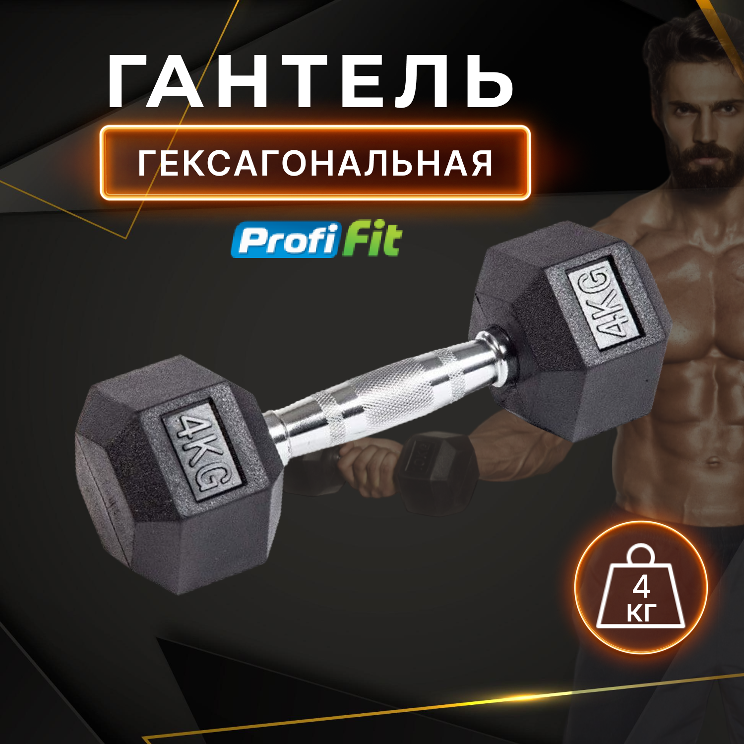 Гантель гексагональная обрезиненная PROFI-FIT 4 кг информация: