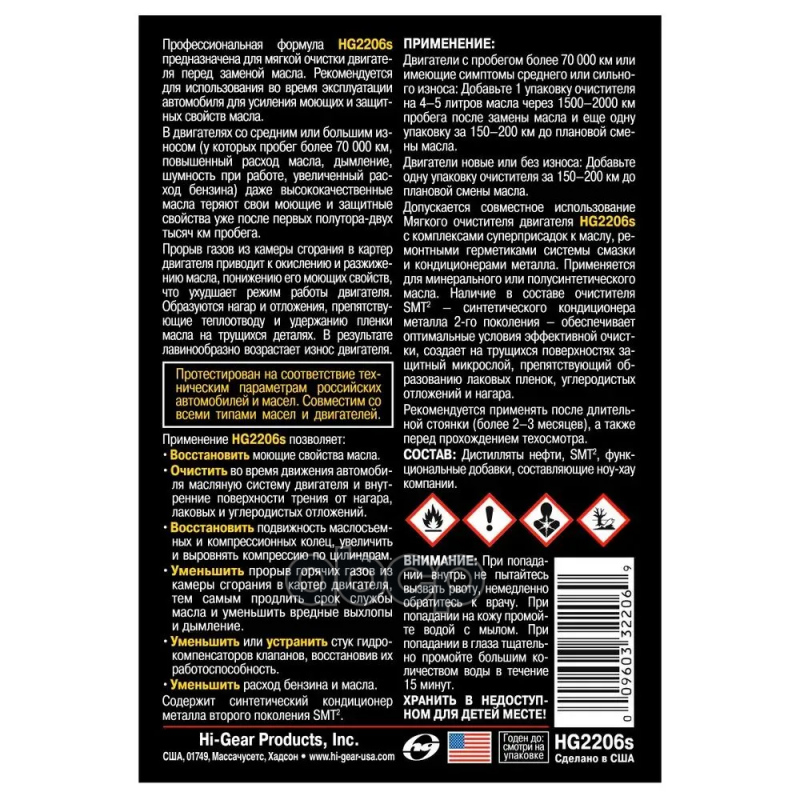 Мягкий Очиститель Двигателя Со Средним И Сильным Износом, С Smt2 Hi-Gear Hg2206s Hi-Gear арт. HG2206s информация: