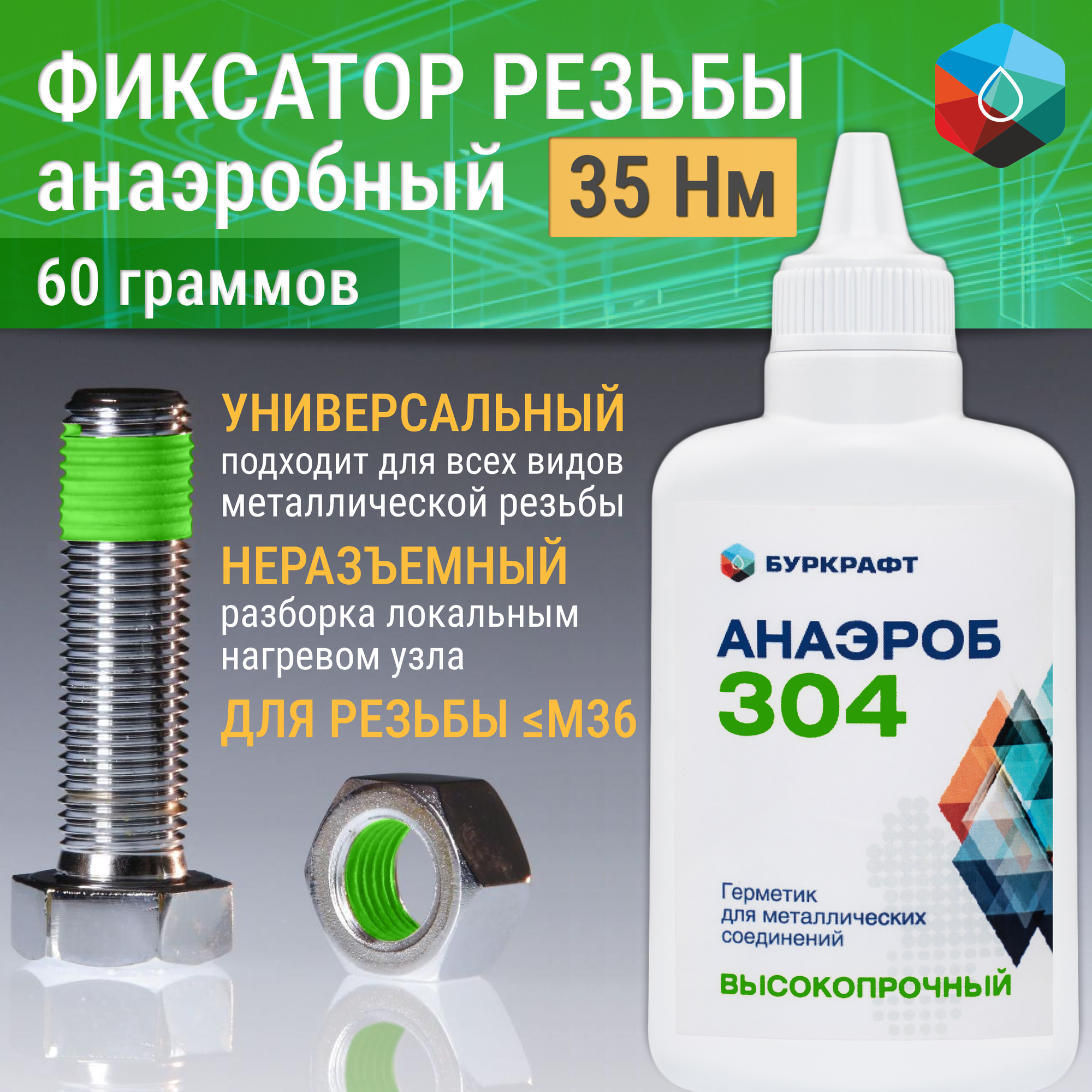 Фиксатор резьбы Анаэроб 304, неразъемный, 60 г информация: