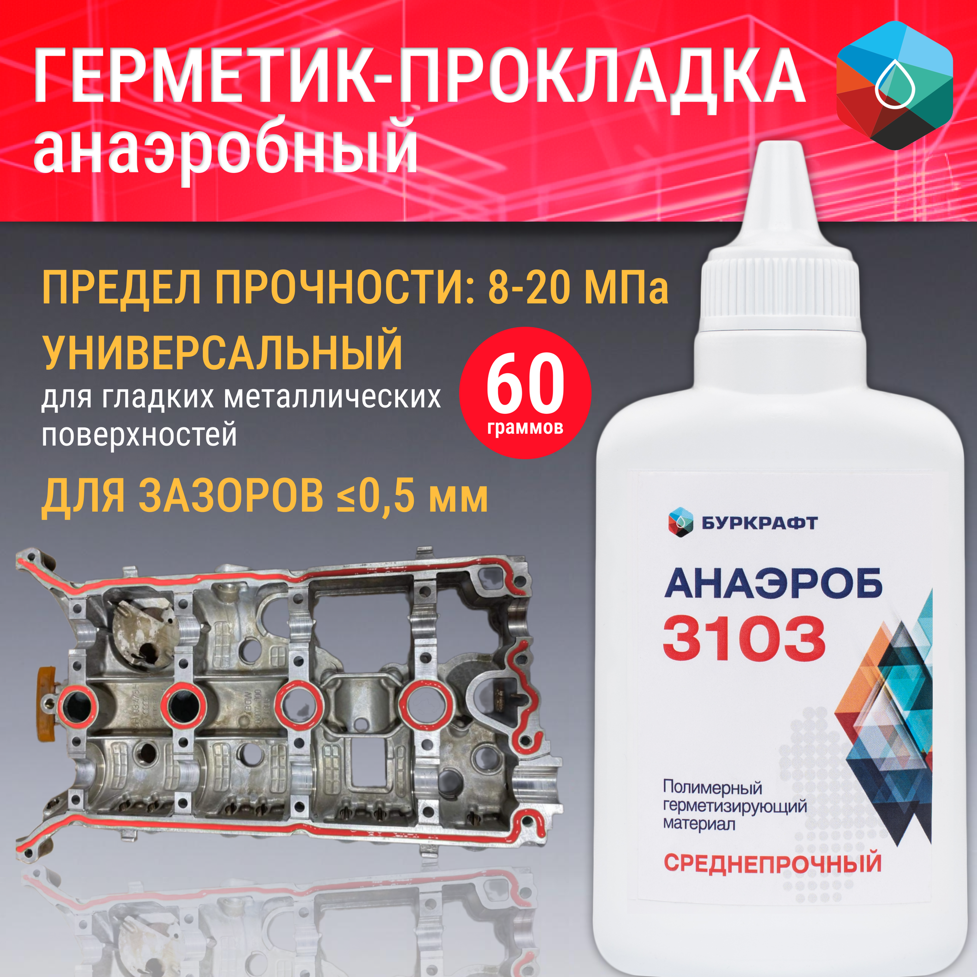Формирователь прокладок анаэробный Анаэроб 3103, вал-втулочный фиксатор, 60 г информация: