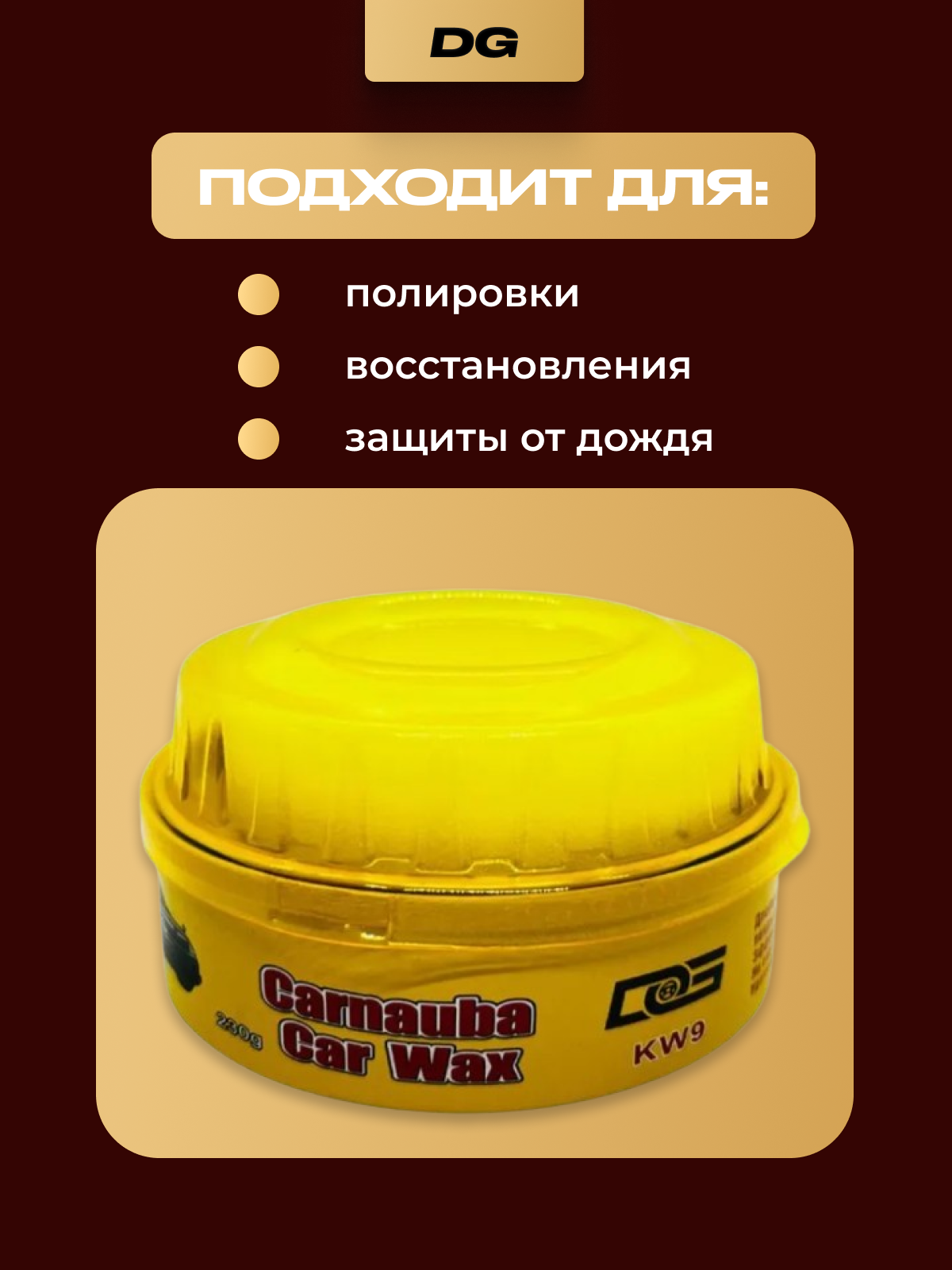 10 цен на Полироль для кузова - автовоск мягкий с карнаубой DG Carnauba Car Wax, банка с губкой 230гр.