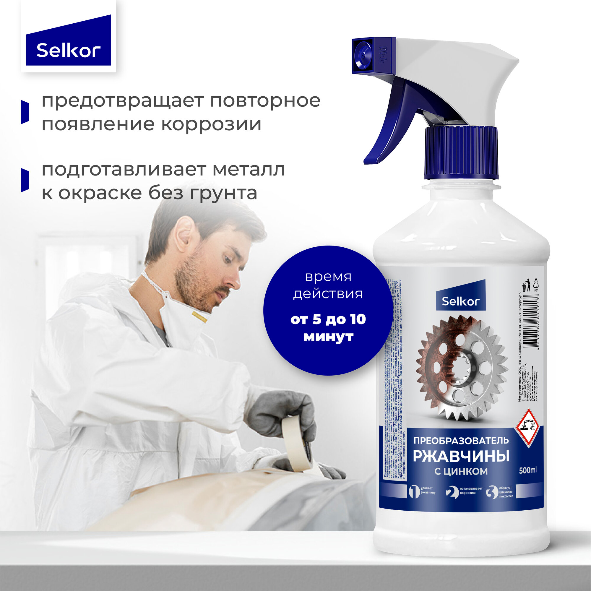 Преобразователь ржавчины с цинком Selkor 0,5 л с триггером информация: