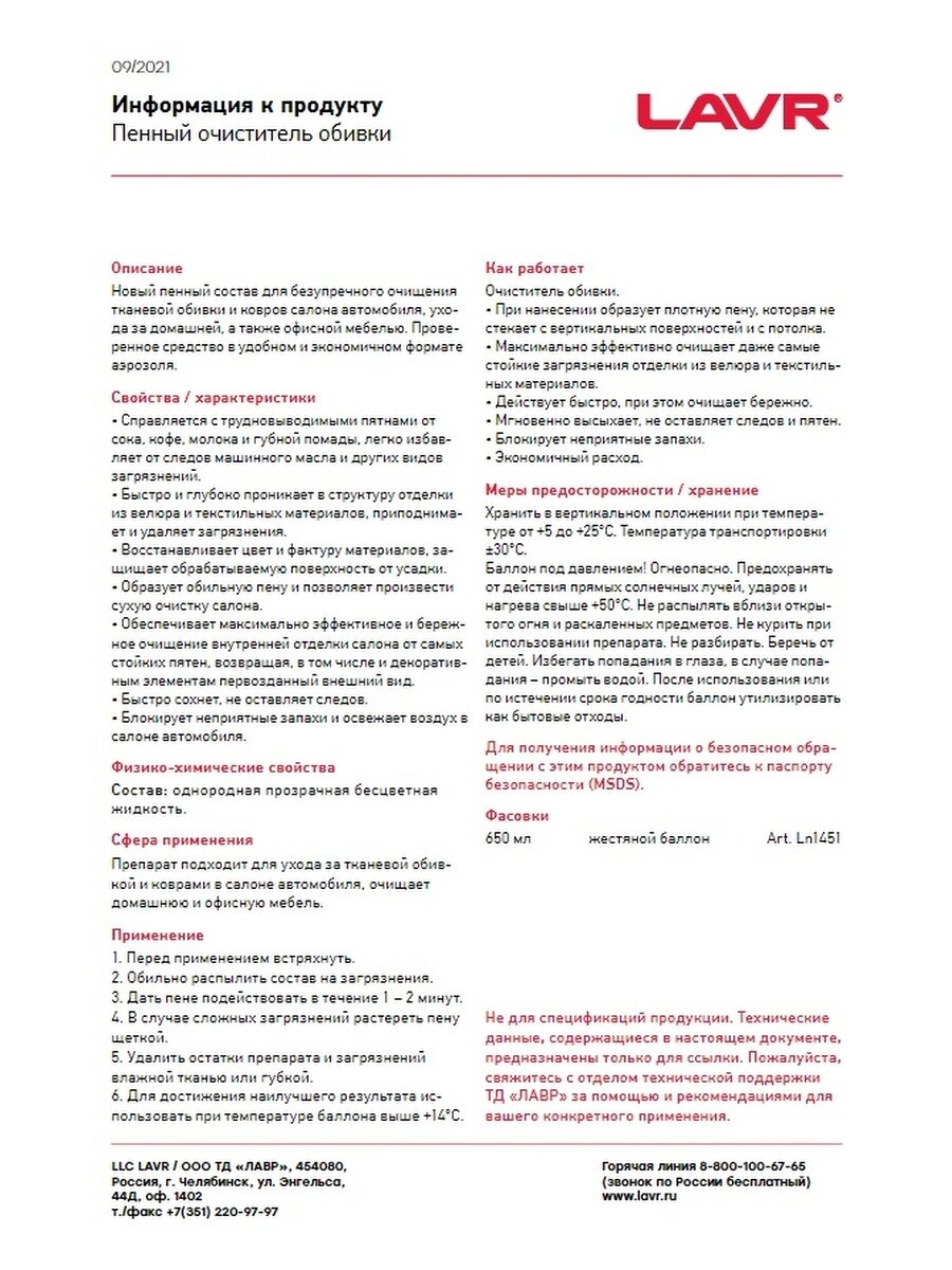 LAVR / Автохимия химчистка салона / химчистка салона автомобиля / Химчистка обивки / Лавр информация: