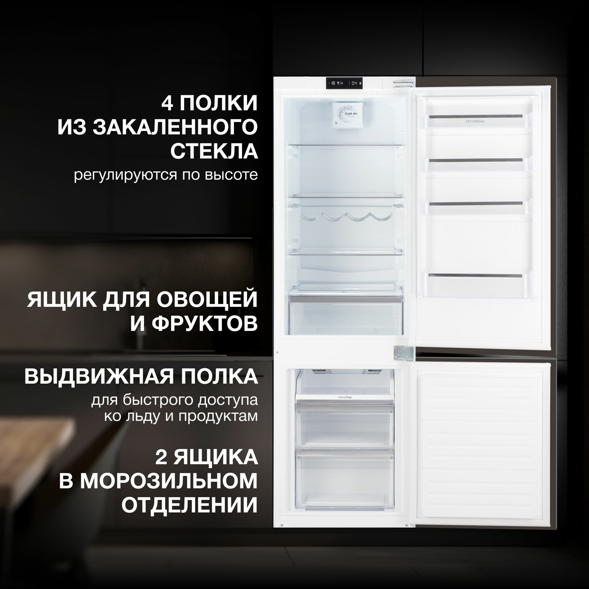 10 цен на Холодильник двухкамерный встраиваемый Hyundai HBR 1785 с No Frost, Белый