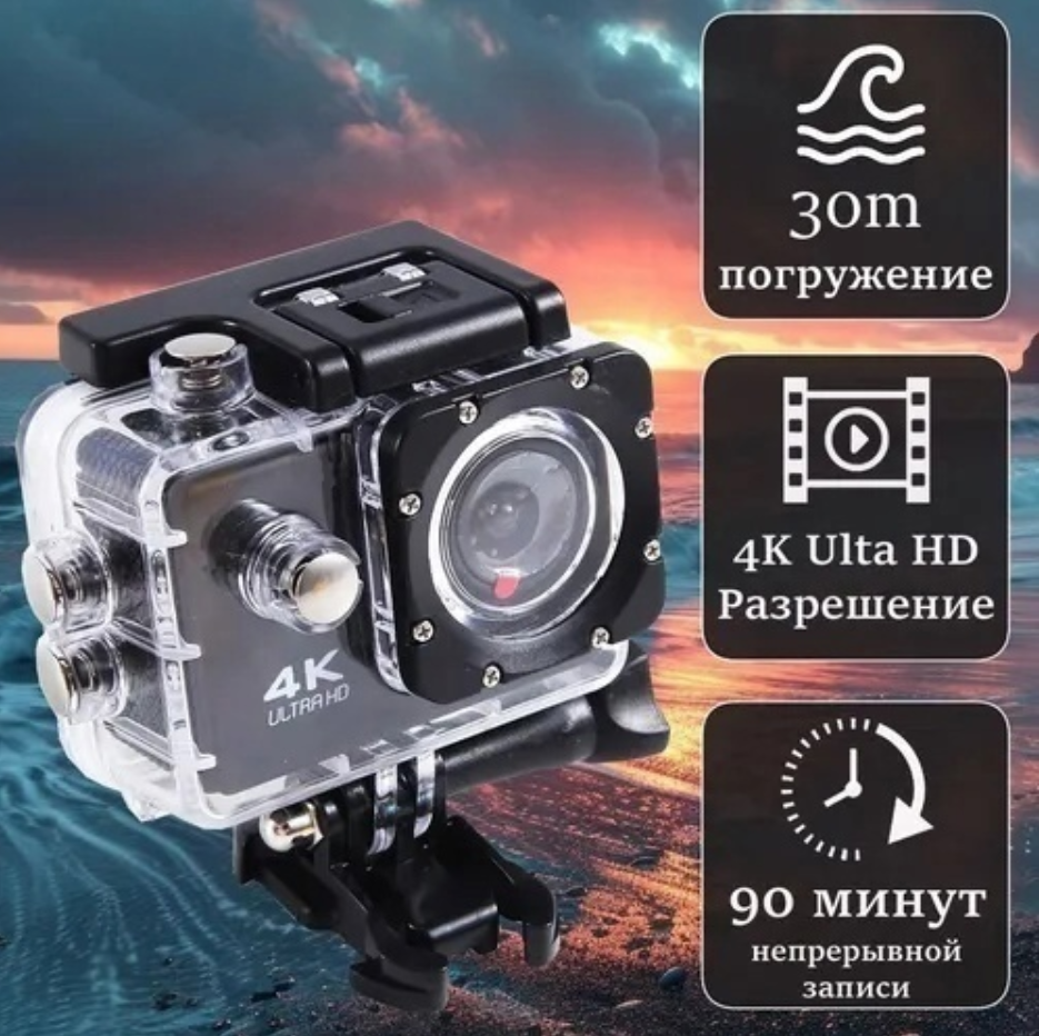 Экшн-камера 4К, Водонепроницаемая, многофункциональная с чехлом для погружения. информация: