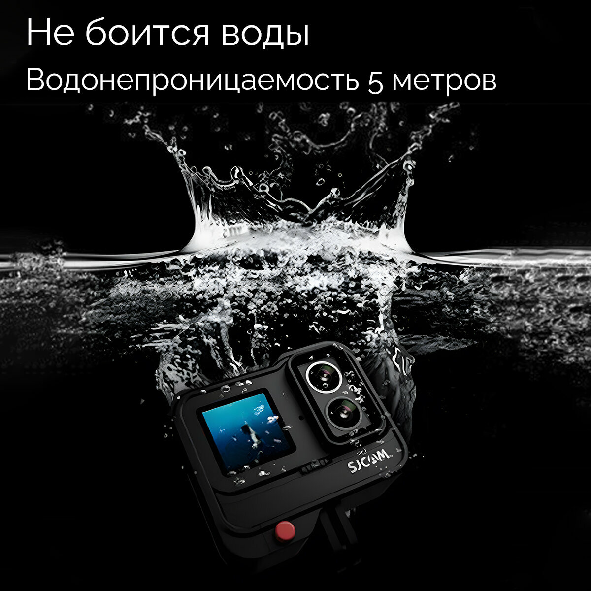 Экшн-камера SJCam SJ20 Dual Lens черная с креплением, цифровым стабилизатором, водонепроницаемая 4K Ultra HD информация: