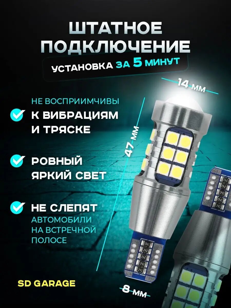 Лампы автомобильные светодиодные LED w16w t15 12v 2шт Т15 информация: