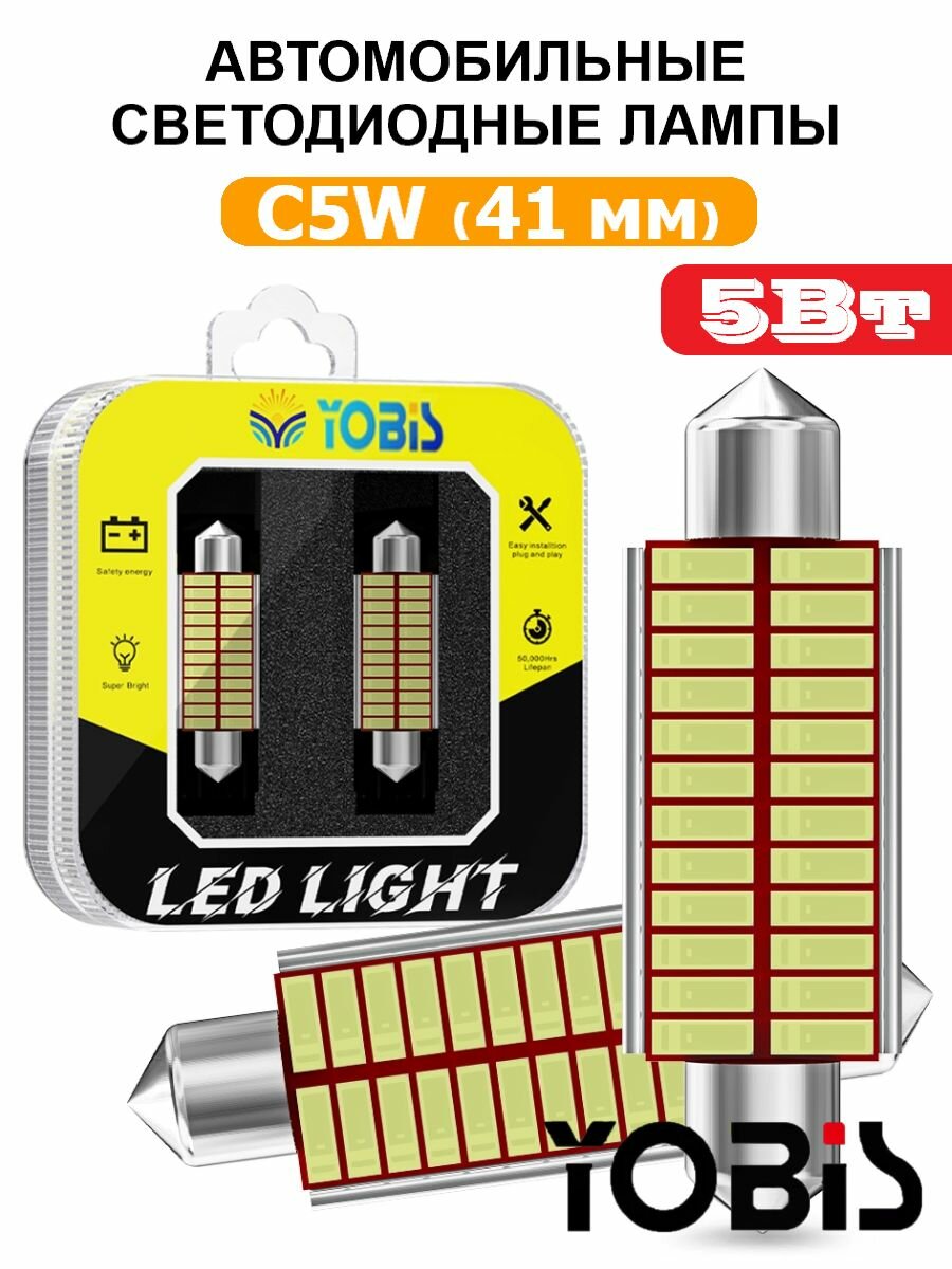 Светодиодные LED лампы C5W 41мм 2шт Белый свет информация: