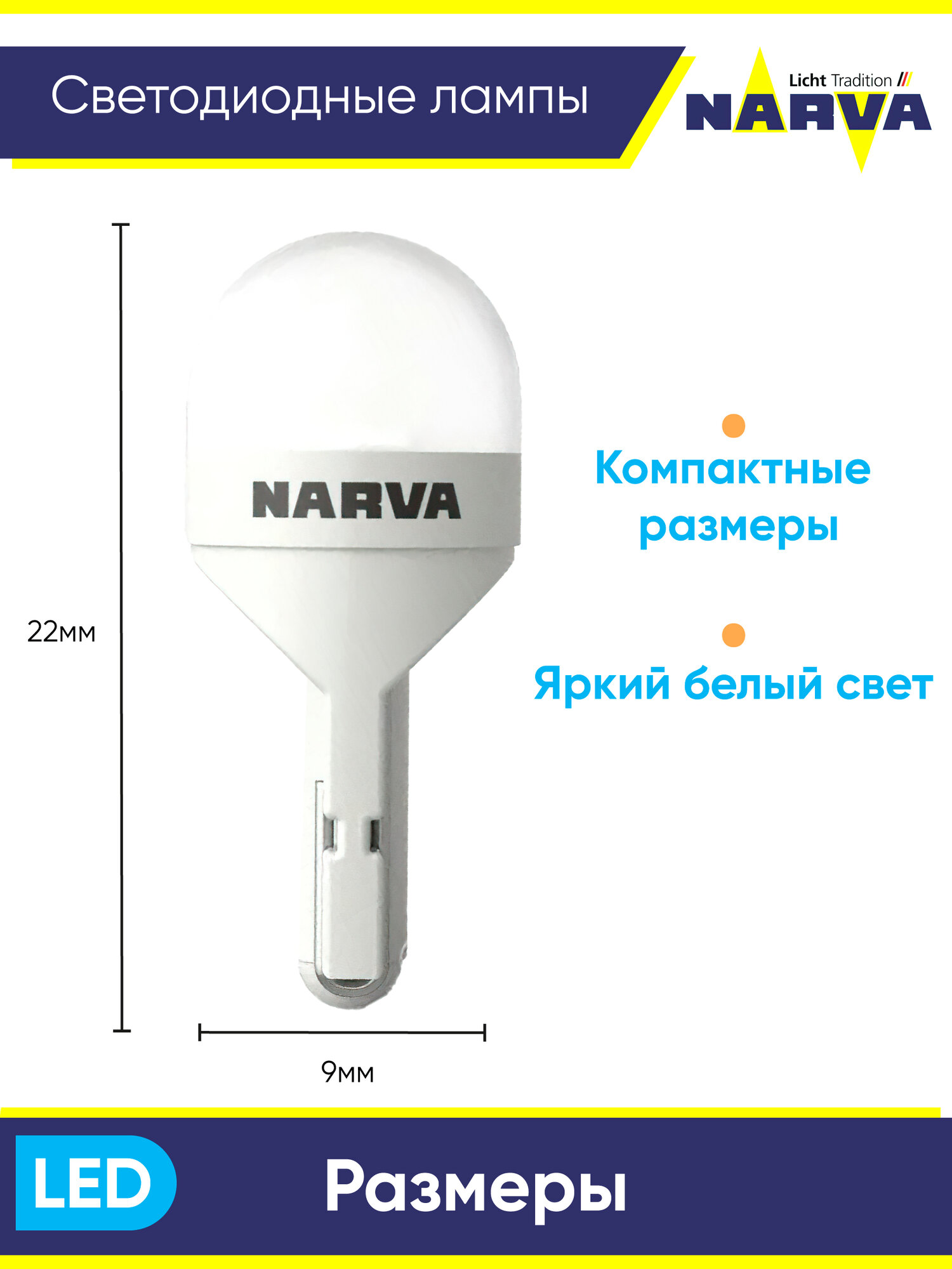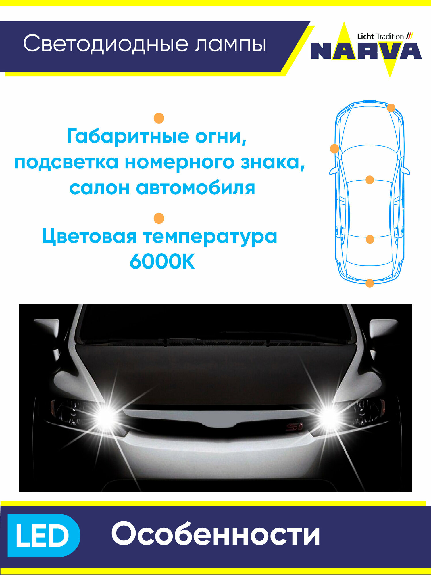 Светодиодная автомобильная лампа 18074/18145 Narva W5W 6000К информация: