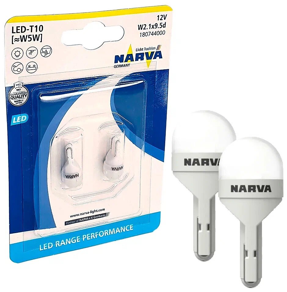 10 цен на Светодиодная автомобильная лампа 18074/18145 Narva W5W 6000К