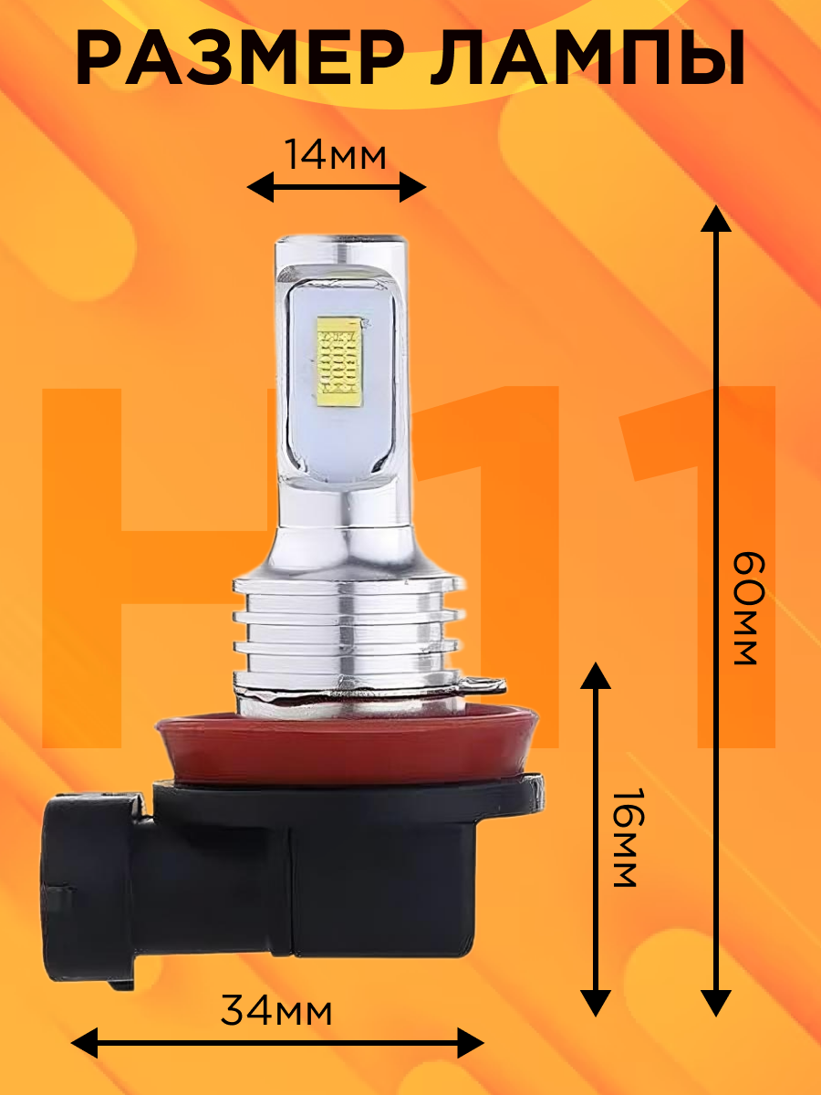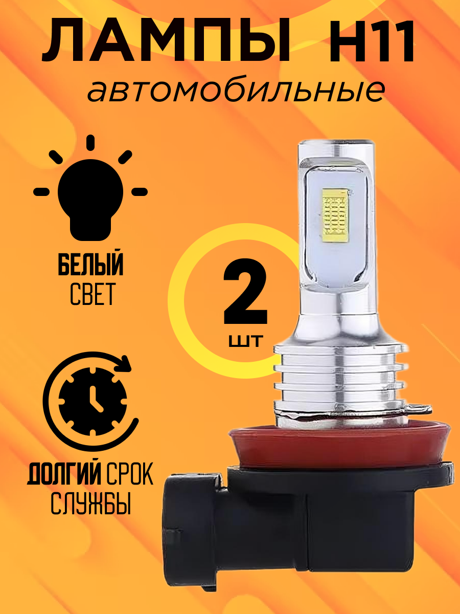 Светодиодные лампы H11 LED 12В, 60Вт, 6000К, 2 шт. информация: