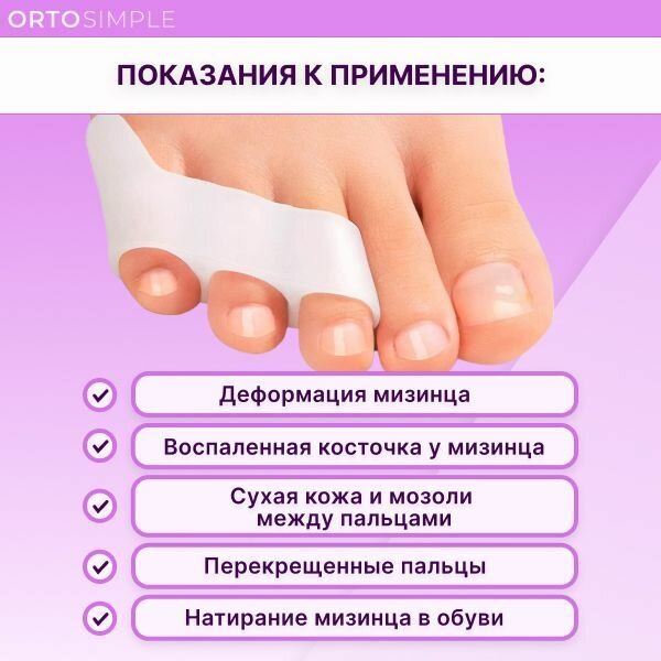 | Дополнительная информация | Ортопедический разделитель пальцев от мозолей с защитой косточки мизинца |