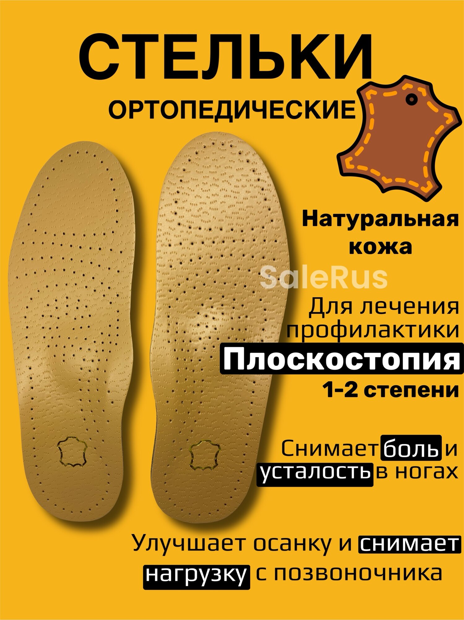 Ортопедические стельки SaleRus из натуральной кожи для мужчин и женщин, размер 35/36 530 ₽