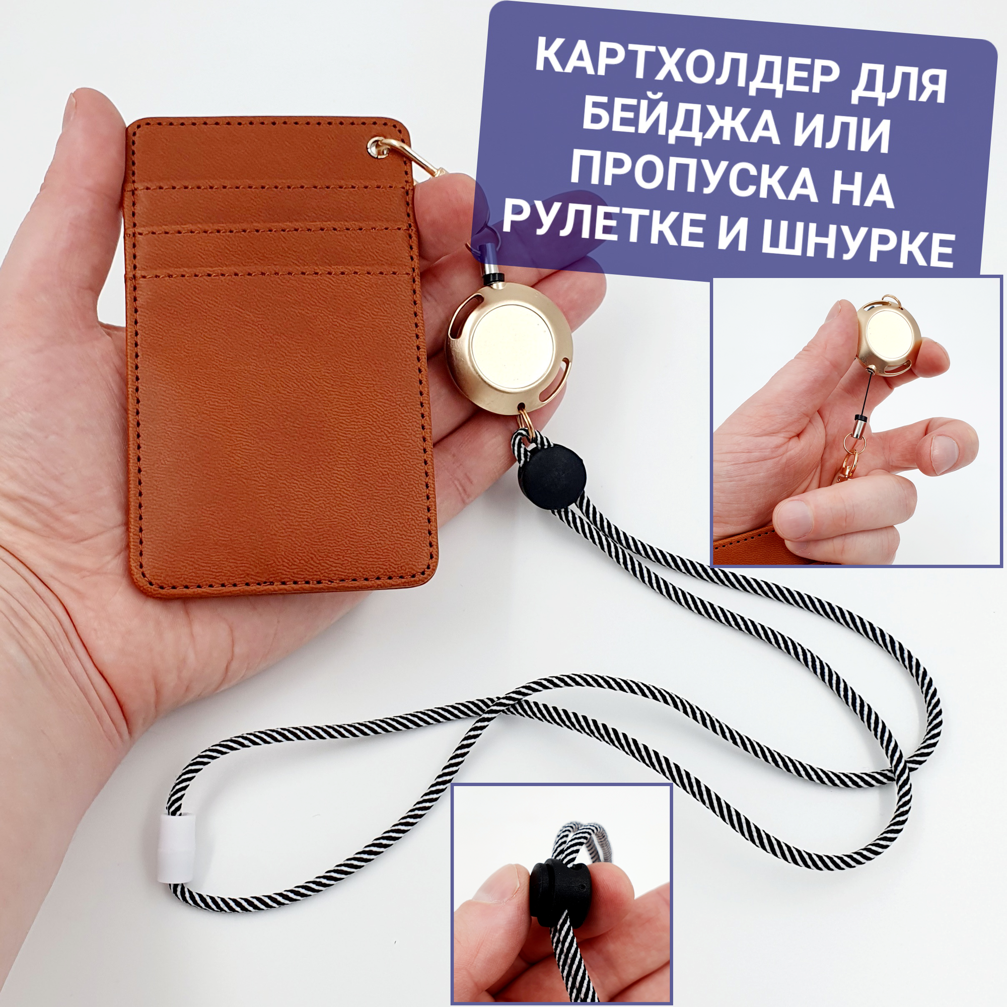 Отзывы на Картхолдер / бейдж для пропуска, карт и проездного с рулеткой и шнурком на шею коричневый