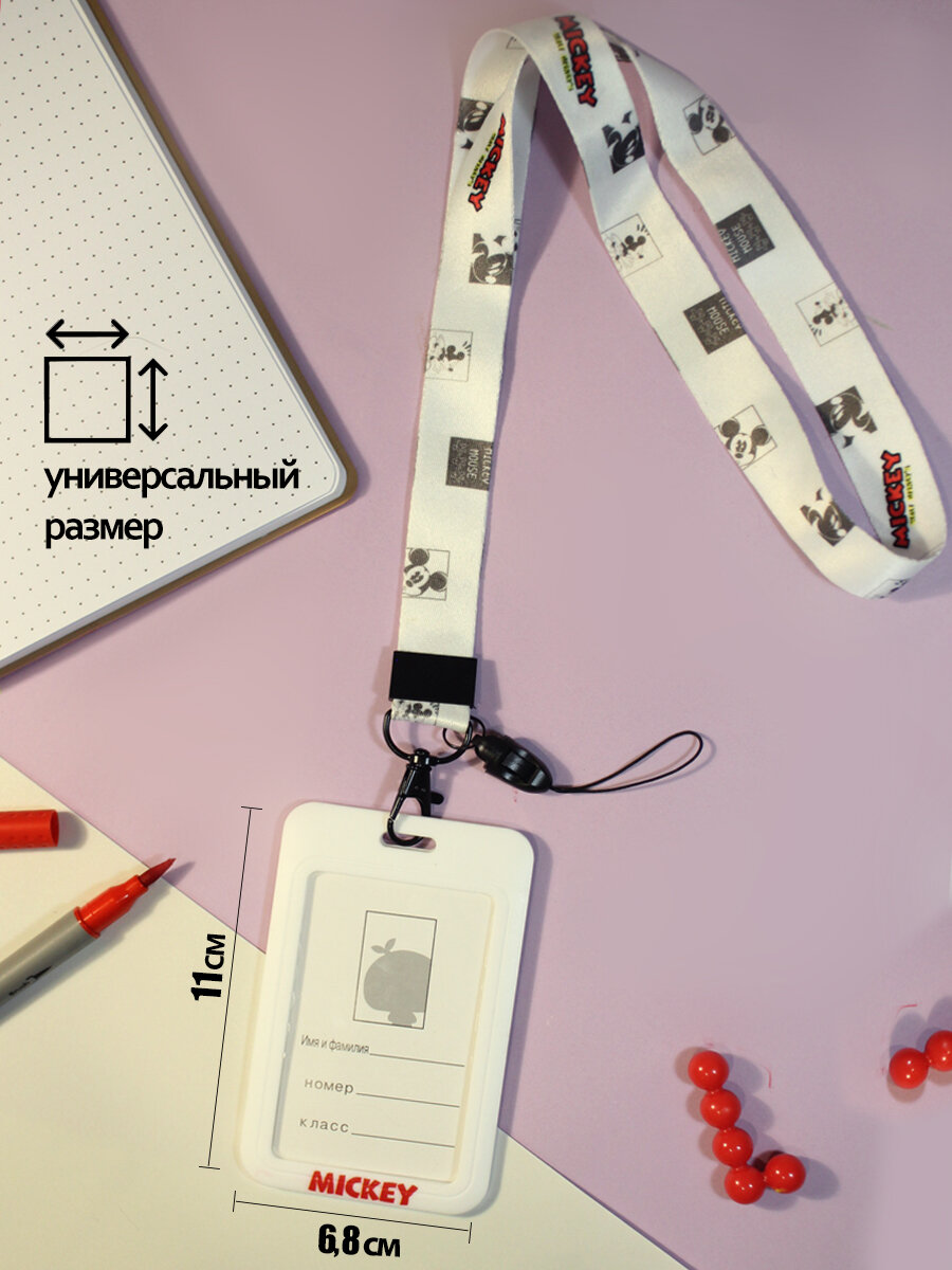 Держатель для бейджа/пропуска/карточки с лентой vaneSbest Mickey Mouse / Микки Маус информация: