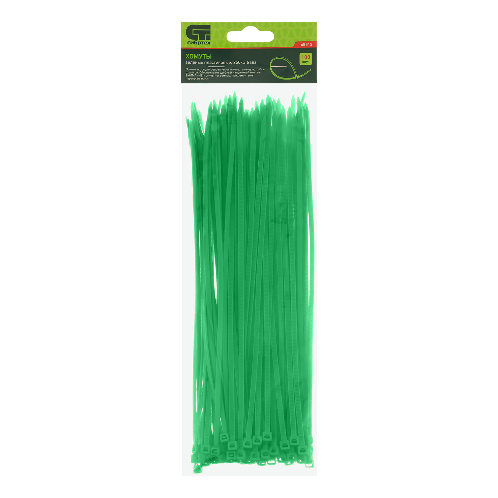 Хомуты Сибртех 250 х 3, 6 мм, пластиковые, зеленые, 100 шт 45513 информация: