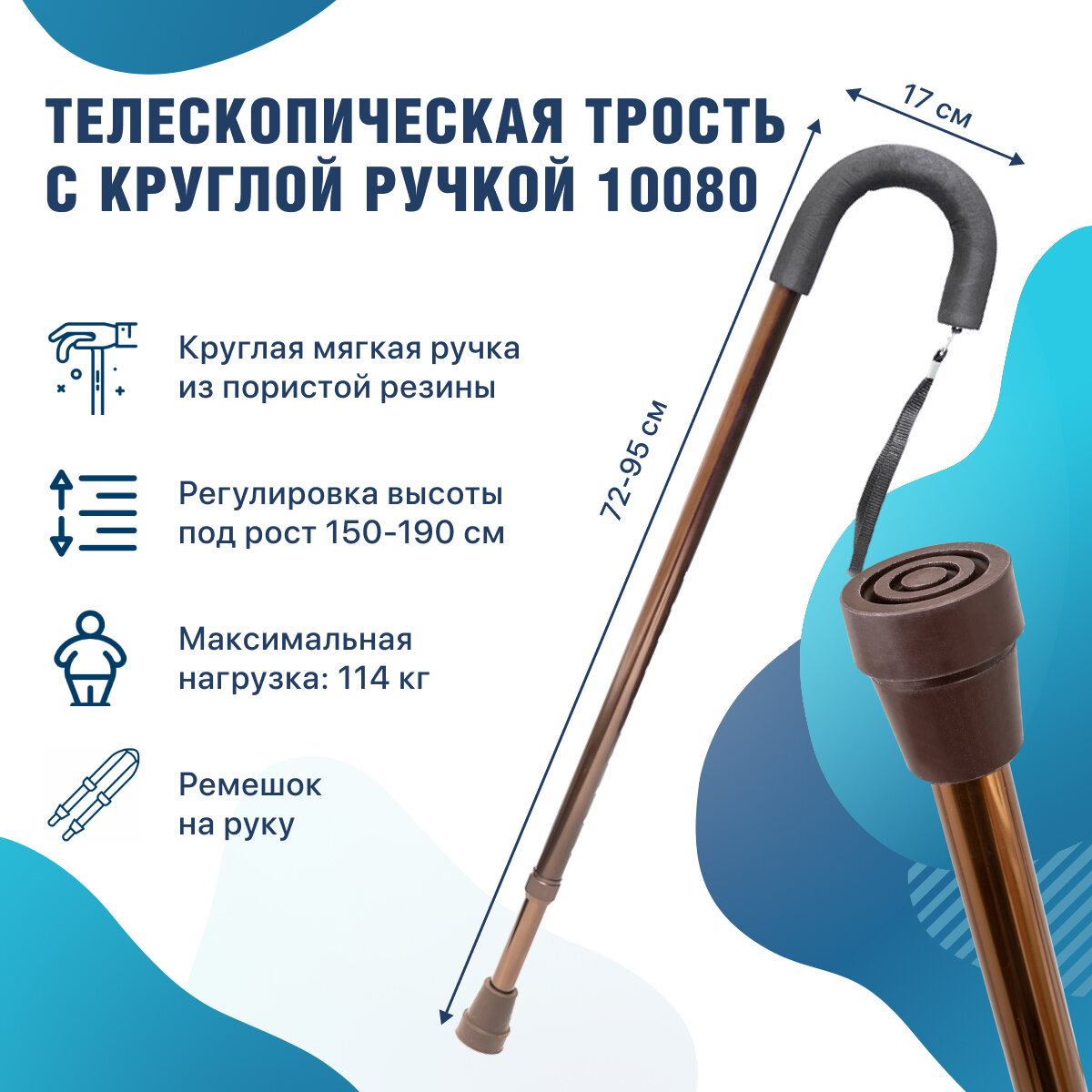 0 отзывов, средняя оценка 0. Чтобы купить «Трость опорная под рост 150-190 см с мягкой круглой ручкой для ходьбы для взрослых и пожилых 10080 цвет бронза» по лучшей цене мы сканируем авито, алиэкспресс, маркет, озон, савеловский, плеер, горбушку, беру, официальные сайты и находим минимальную. Администрация не несет ответсвенность актуальность цен на Трость опорная под рост 150-190 см с мягкой круглой ручкой для ходьбы для взрослых и пожилых 10080 цвет бронза, более подробно узнавайте на сайте магазина.