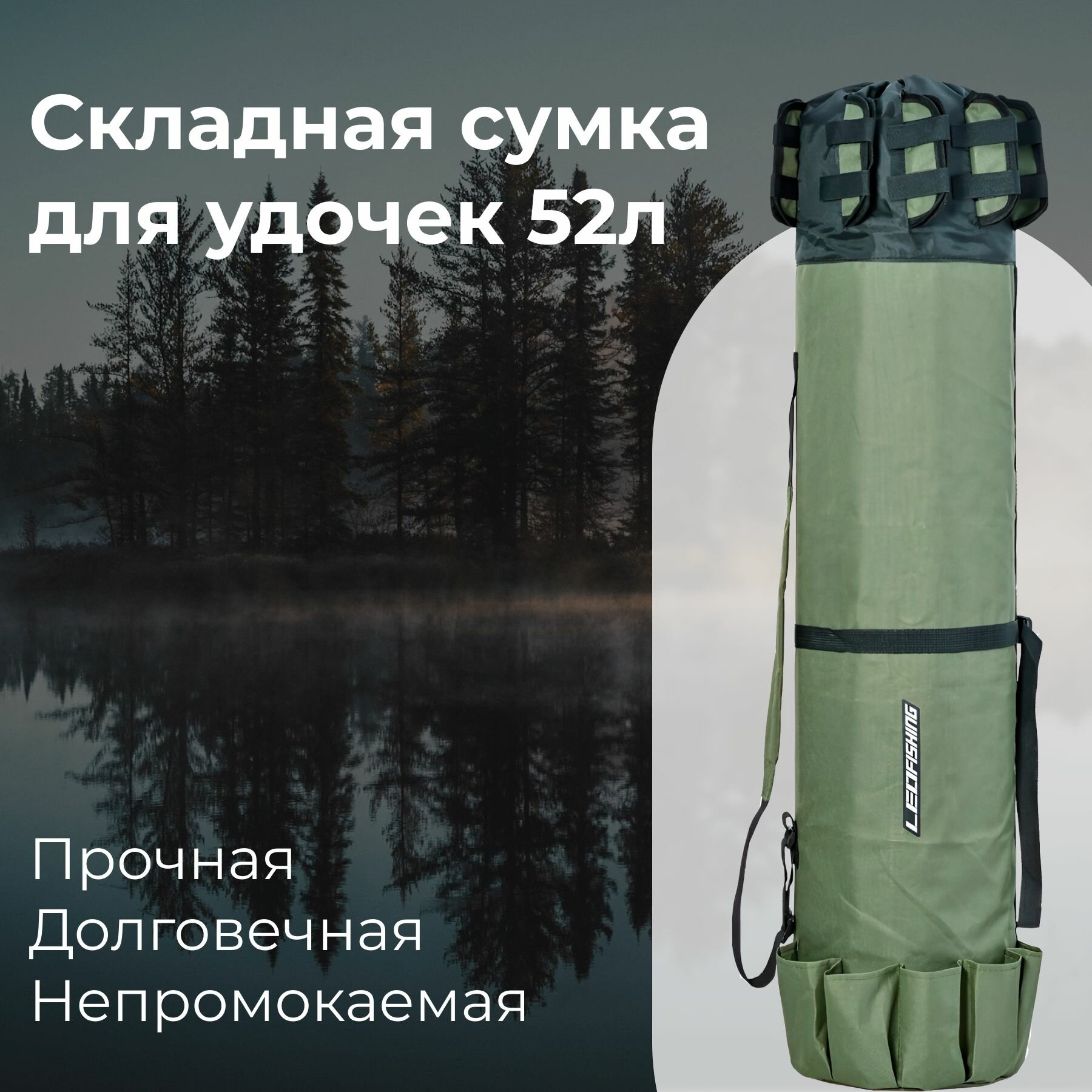 10 цен на Сумка для снастей складная цилиндрическая LEO FISHING для 5 удочек 52л зелёная