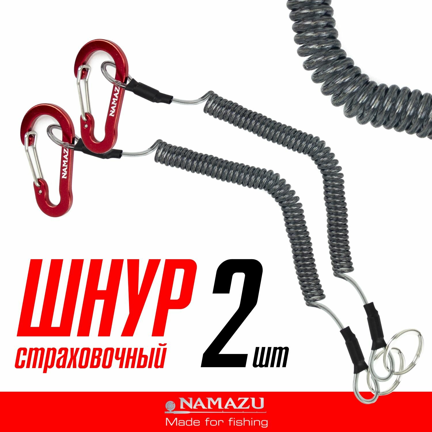 Шнур витой страховочный Namazu с карабином 4,5 см, для рыболовного инструмента, 2шт. информация: