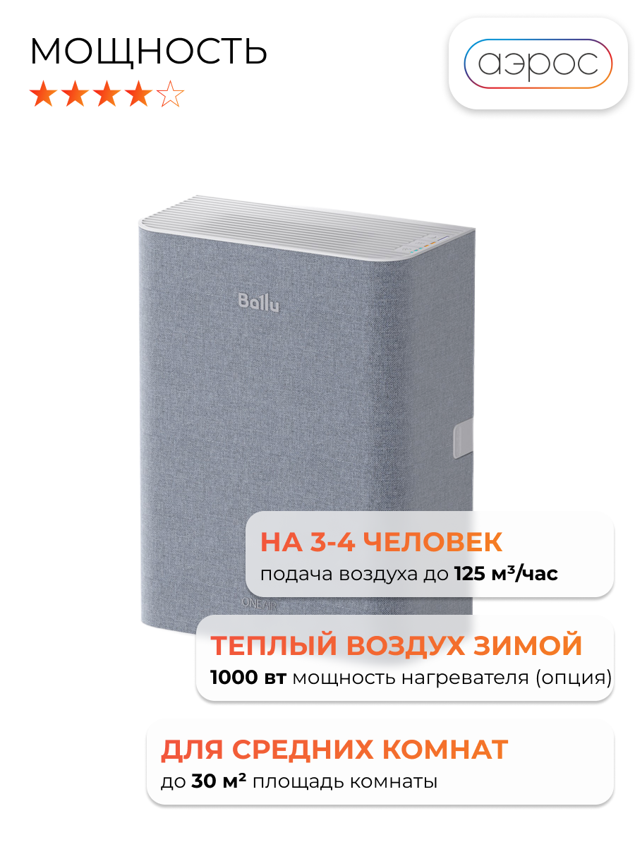 Отзывы на Очиститель воздуха приточный Ballu ONEAIR ASP-100 серый с нагревом + фильтр F5